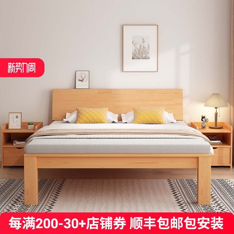 实木床现代简约双人床主卧1.5米床1.2米床全实木床架欧式床美式床