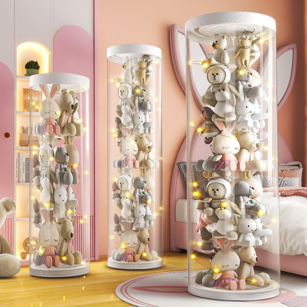 娃娃收纳桶墙毛绒玩偶收纳网兜公仔儿童玩具透明筒神器拉链整理箱