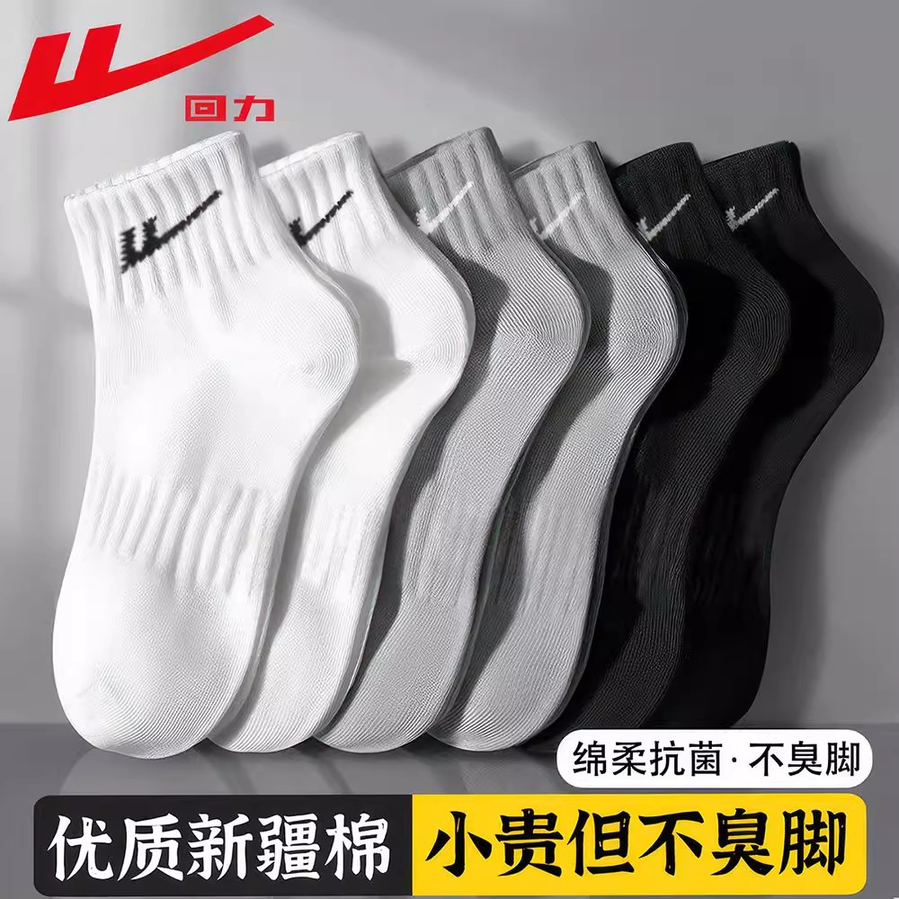 回力袜子男款短袜7A抗菌防臭运动袜夏季纯色新疆棉春秋中短筒袜