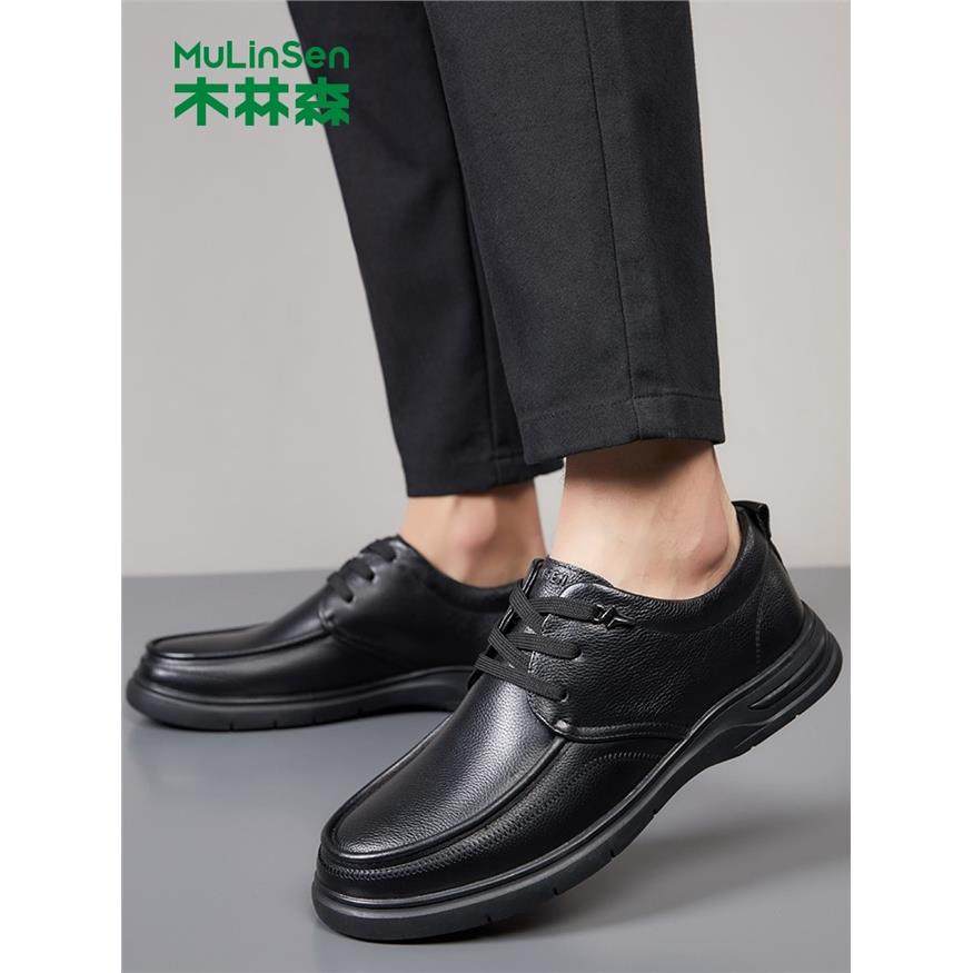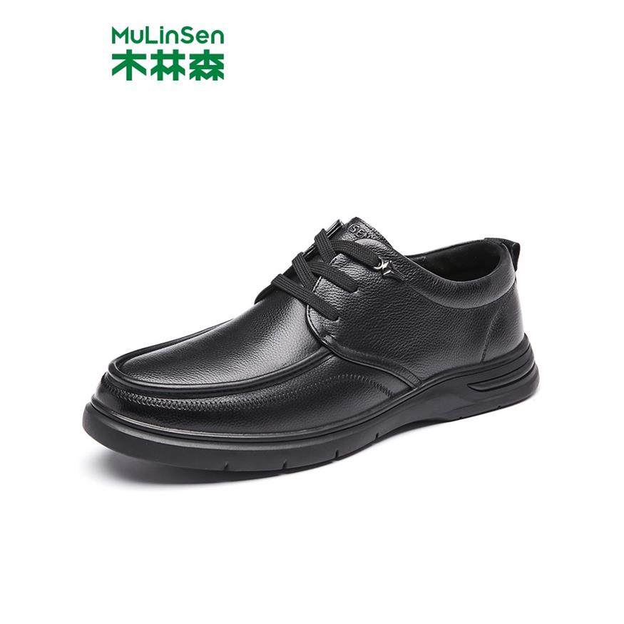 木林森男鞋春季新款头层牛皮系带休闲皮鞋男款软面软底中年爸爸鞋