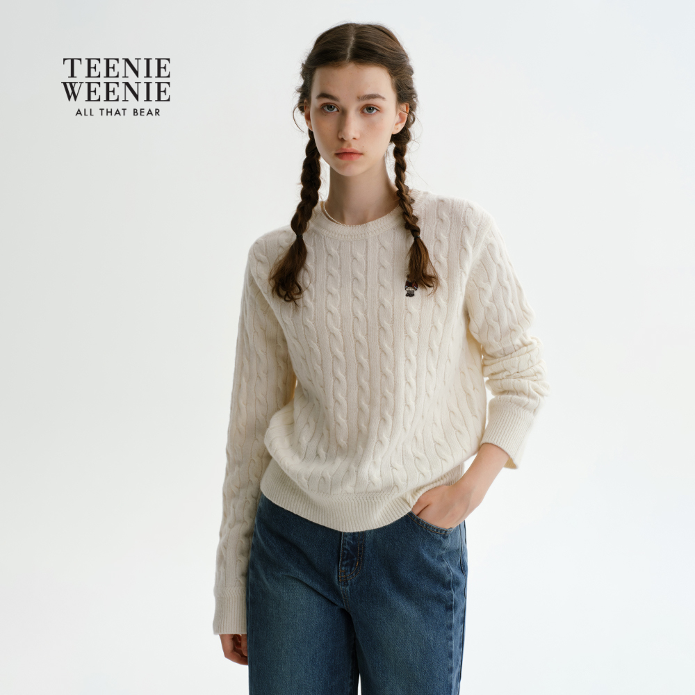 TeenieWeenie小熊女装毛针织衫2025秋季新款气质学院复古绞花毛衣