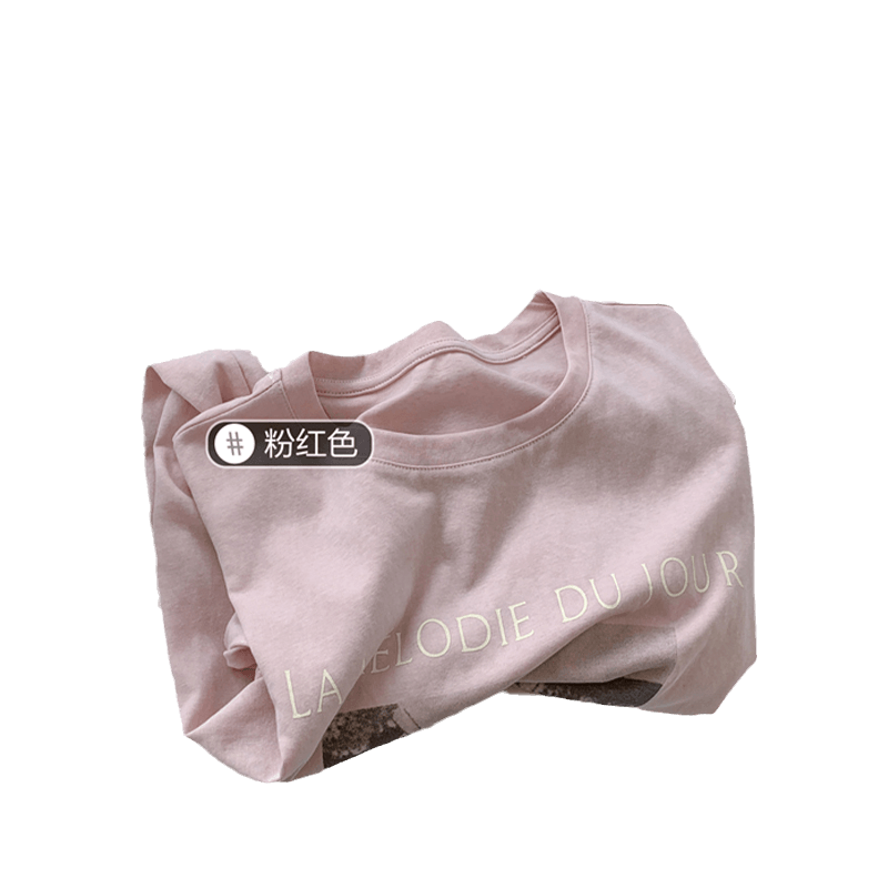 字母印花薄款纯棉短袖T恤女浅粉色圆领宽松印花上衣夏季T恤女韩版