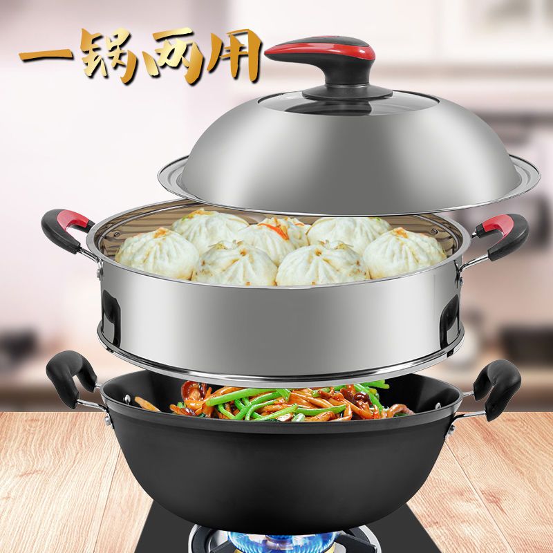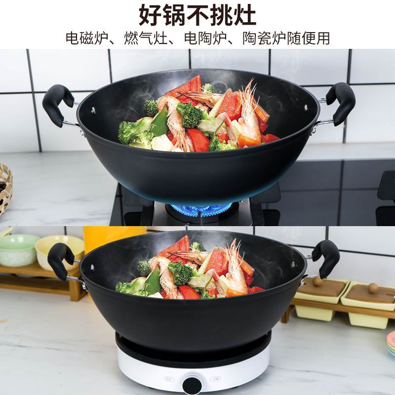 炒菜锅铁锅家用老式双耳炖锅平底锅炒锅铸铁不粘锅大号燃气灶适用