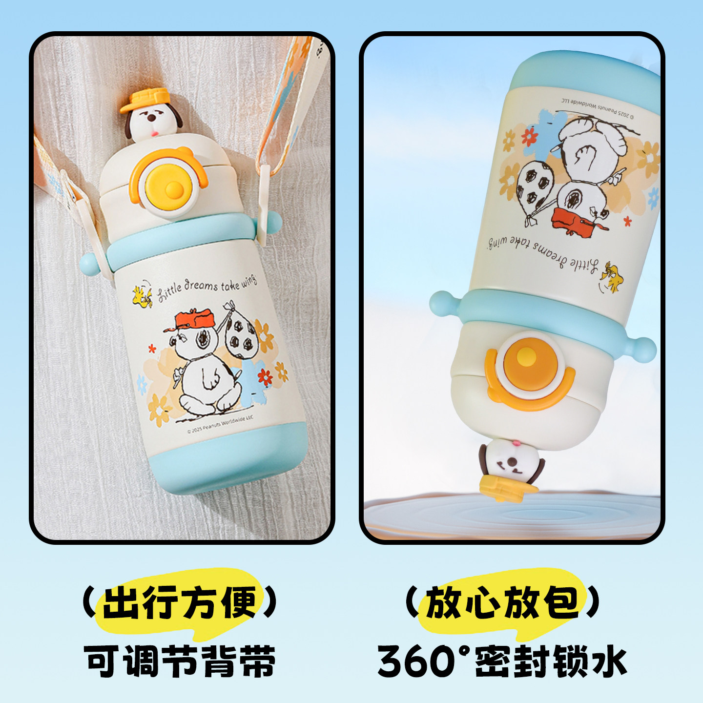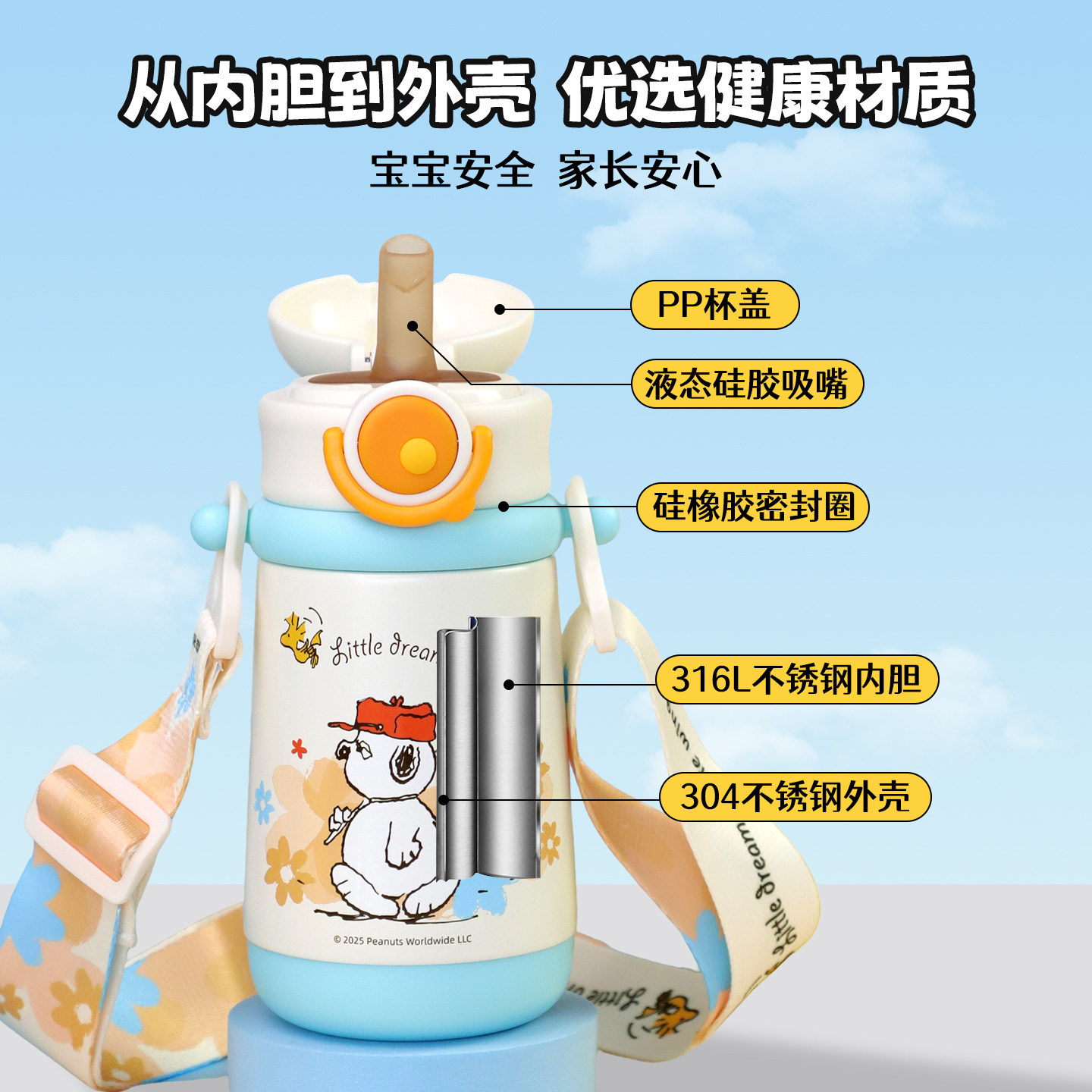 史努比儿童保温杯316不锈钢宝宝吸管水杯幼儿园学生上学专用便携