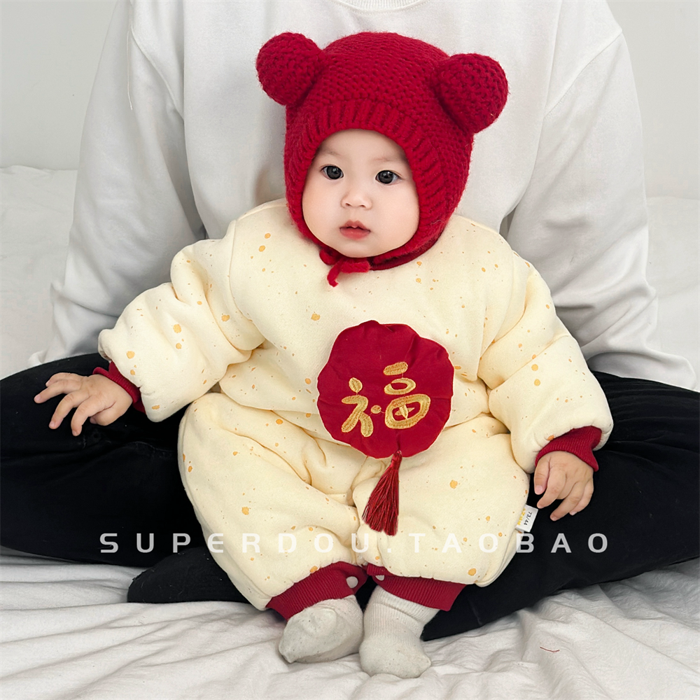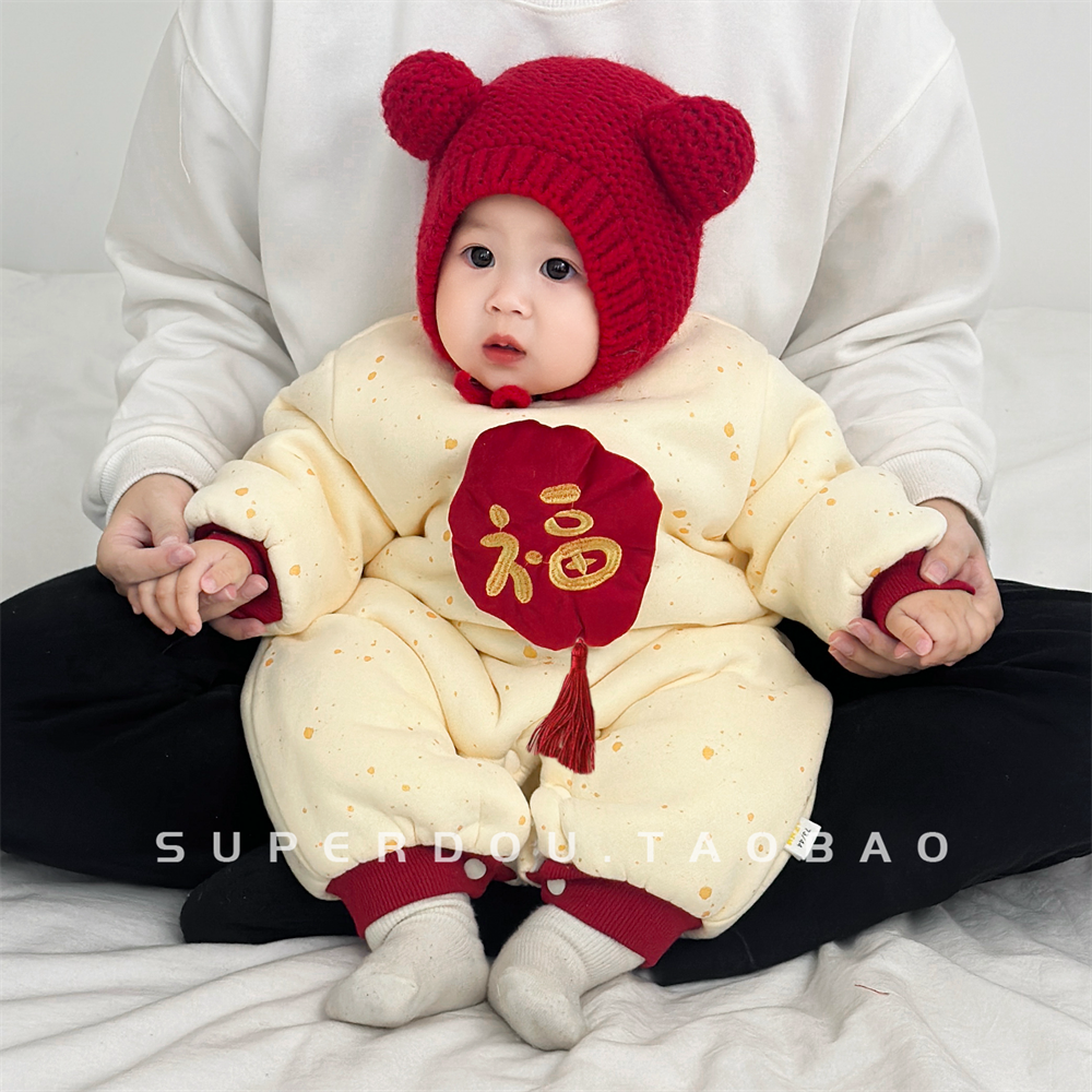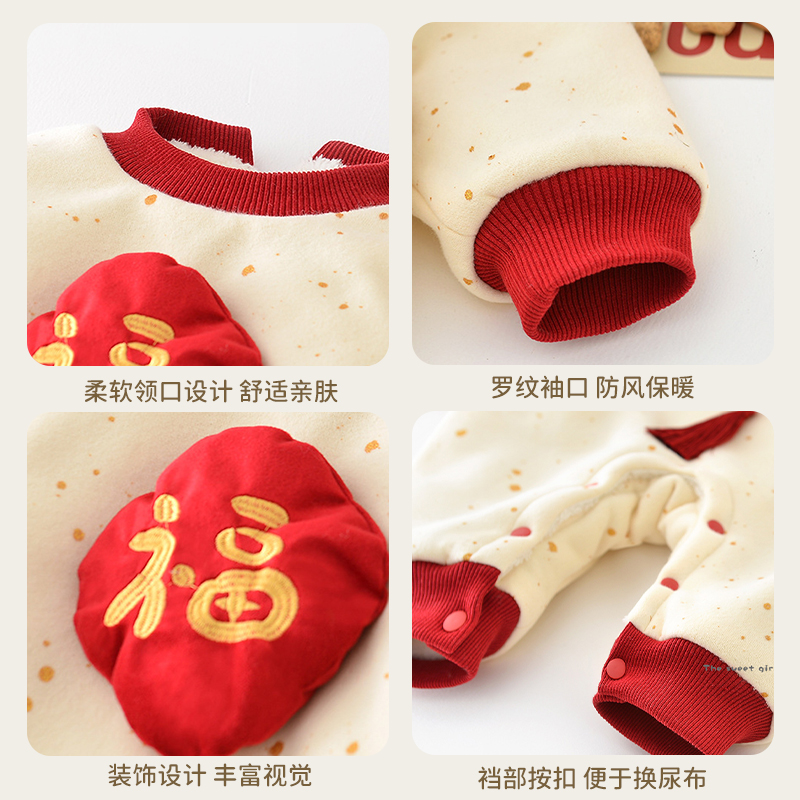 小宝宝秋冬衣服婴儿连体衣冬季中国风婴幼儿加绒加厚外出服抓周服