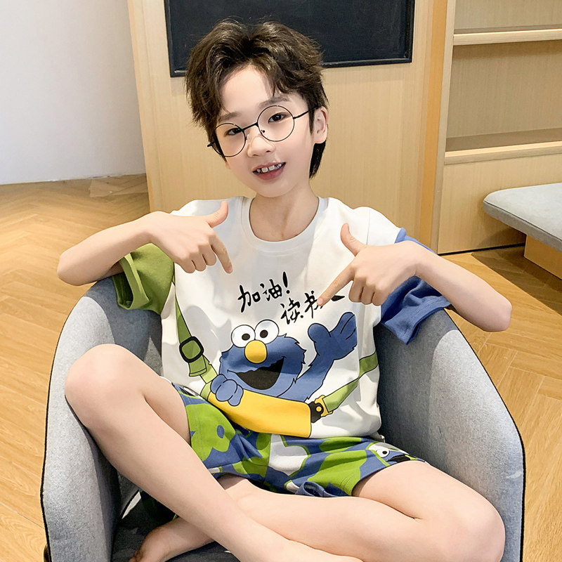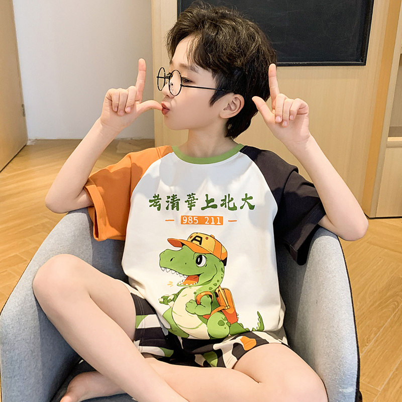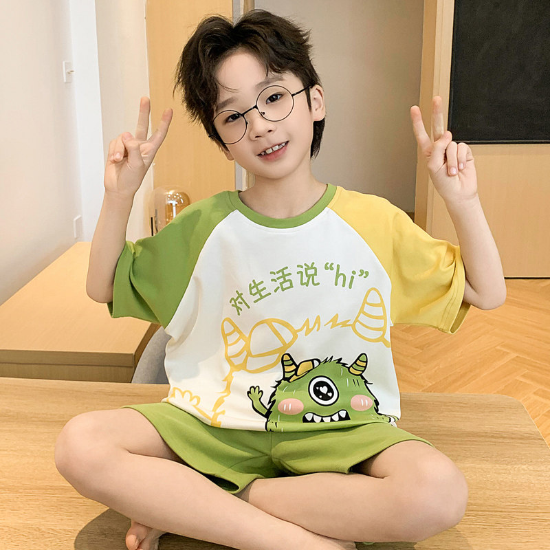 男童睡衣夏季薄款短袖纯棉儿童睡衣男孩夏天中大童宝宝家居服套装
