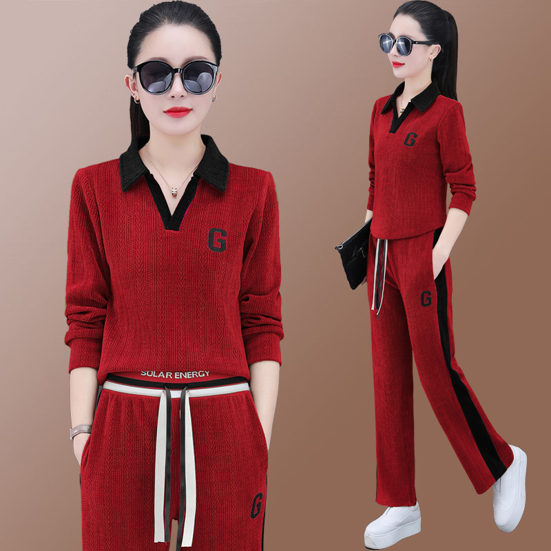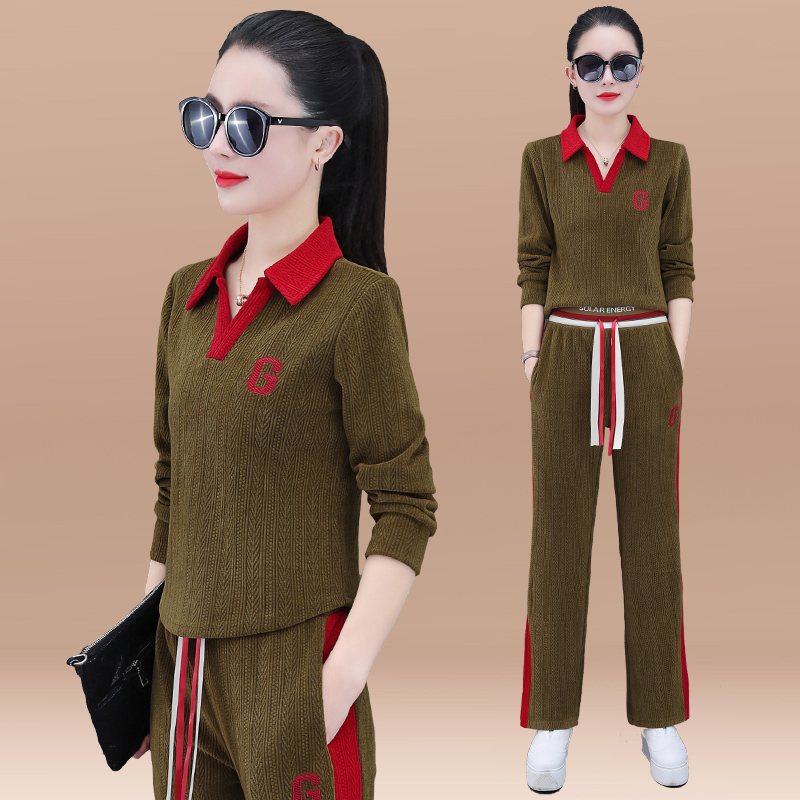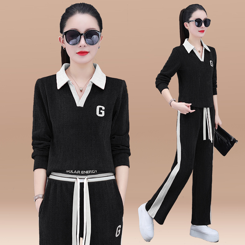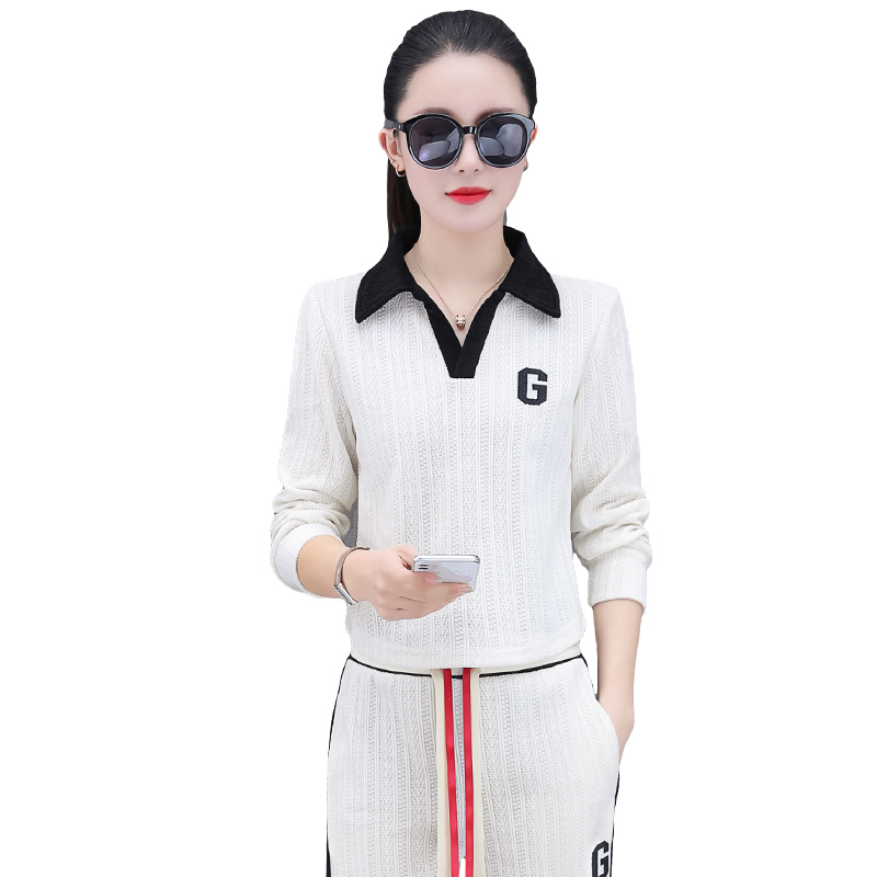 春季新款翻领运动卫衣套装女