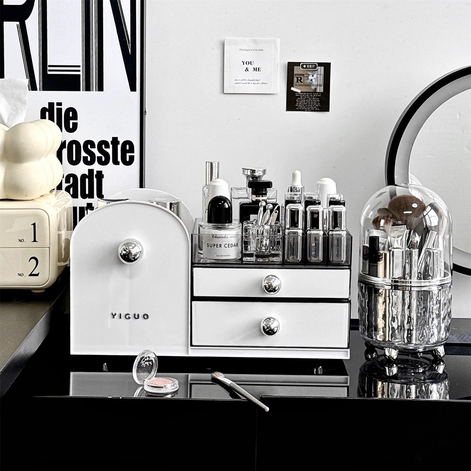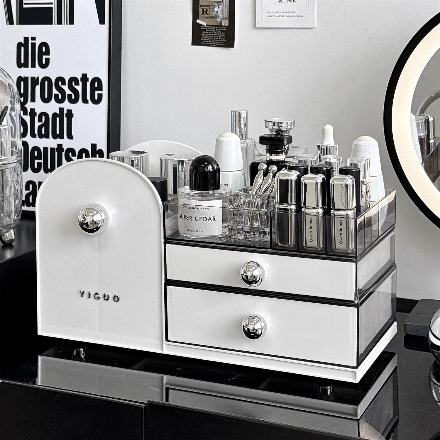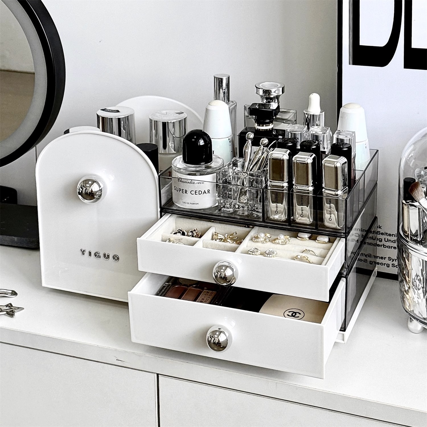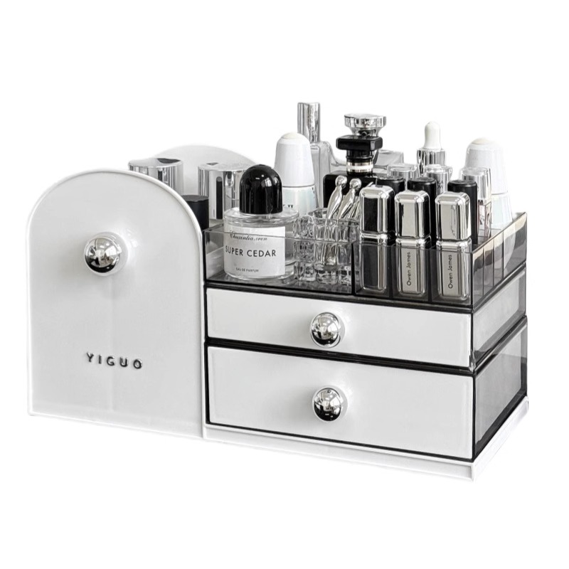 2025新款化妆品收纳盒桌面首饰一体防尘抽屉式梳妆台护肤品置物架