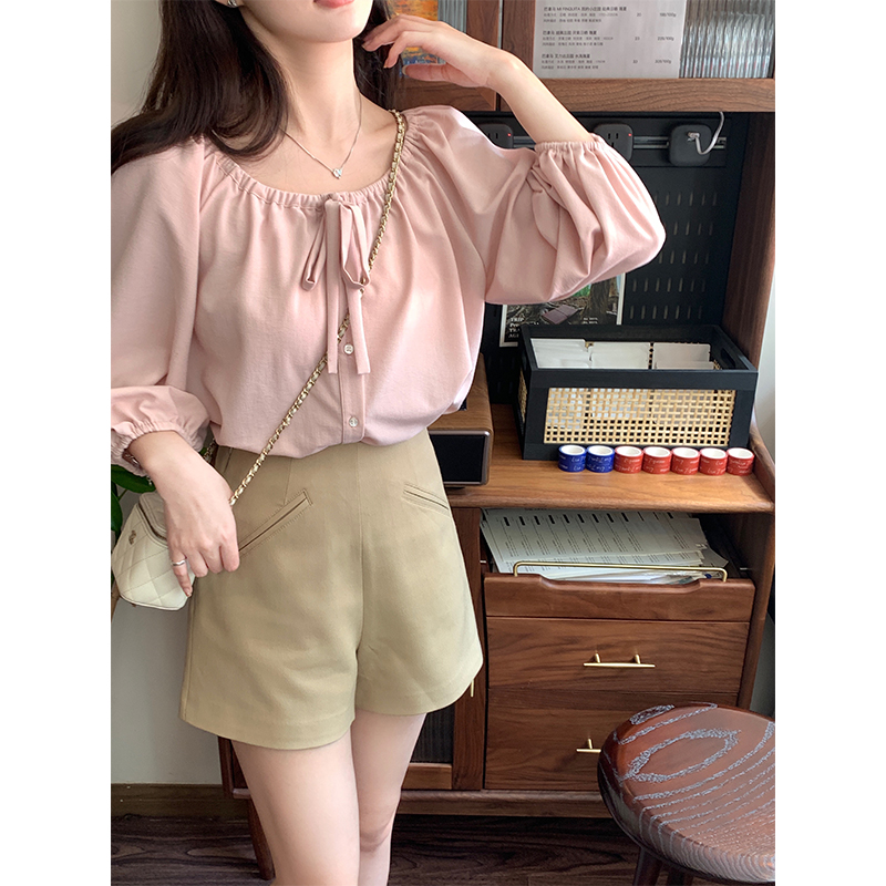 百搭卡其色短裤百褶裙