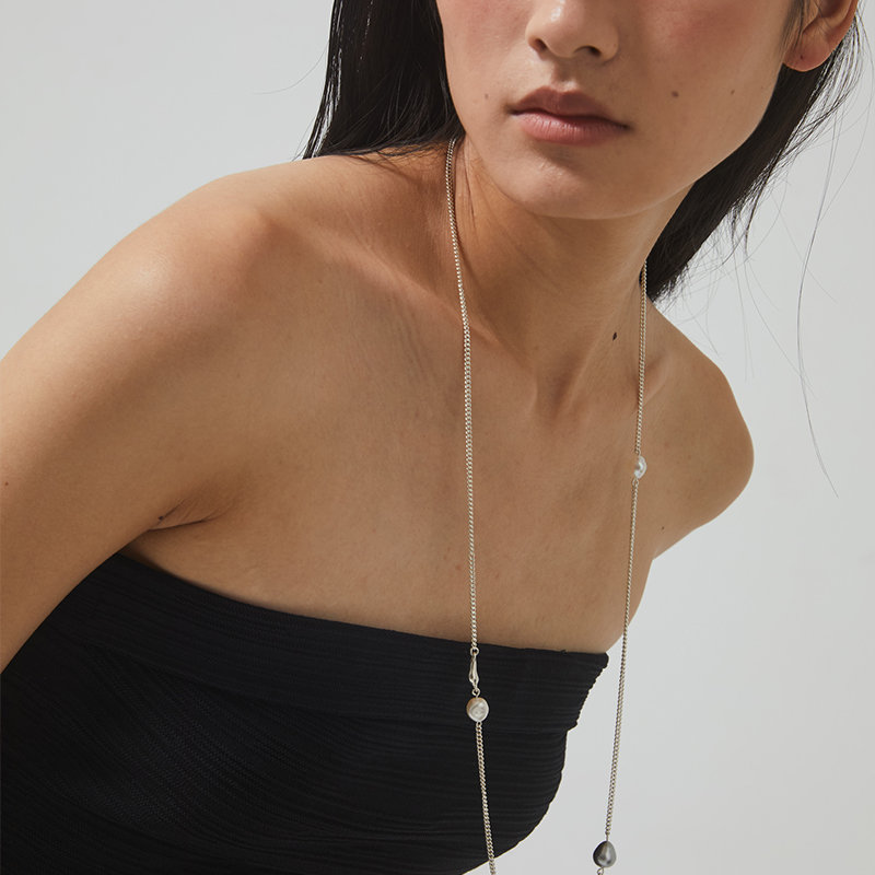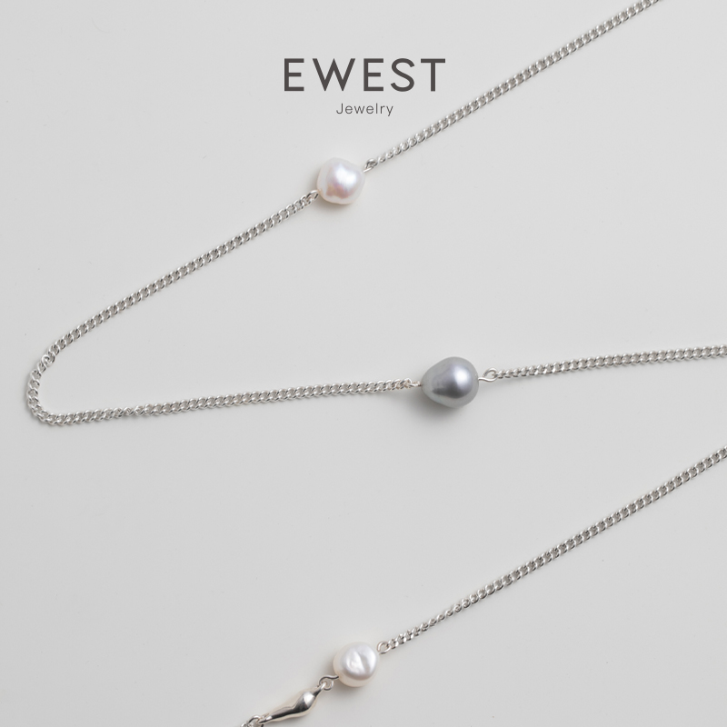 EWEST 2025新款设计感毛衣链珍珠项链女小众轻奢高级长款银锁骨链