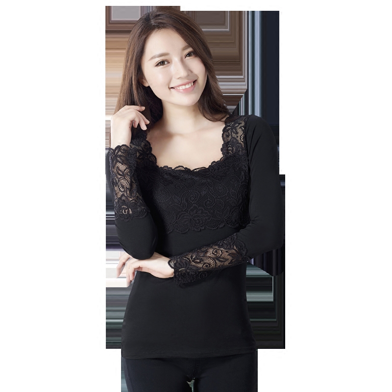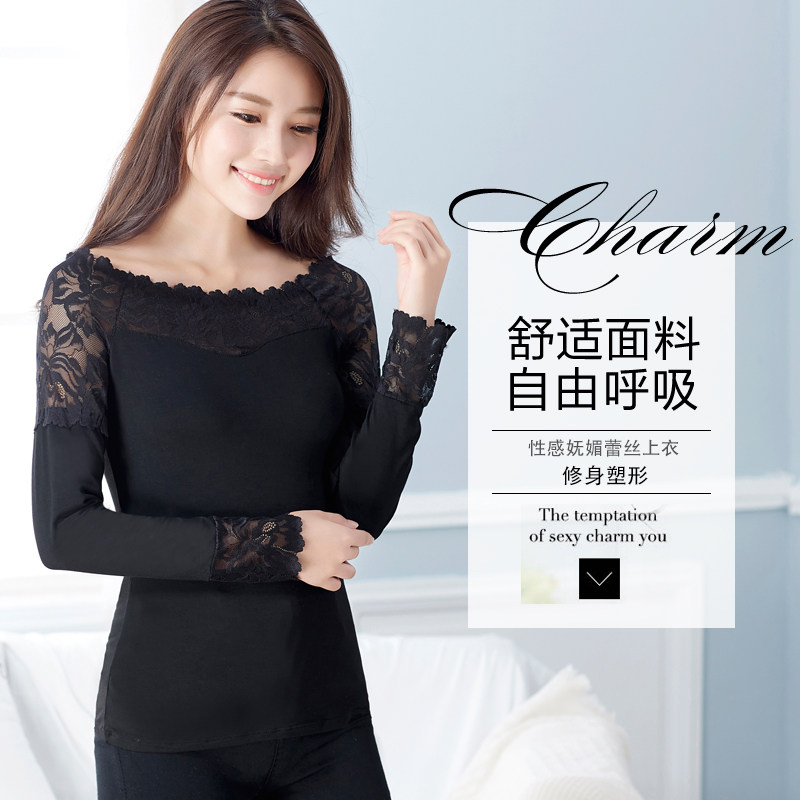 长袖T恤女上装春秋 莫代尔大码秋衣打底衫蕾丝袖口淑女风修身女装