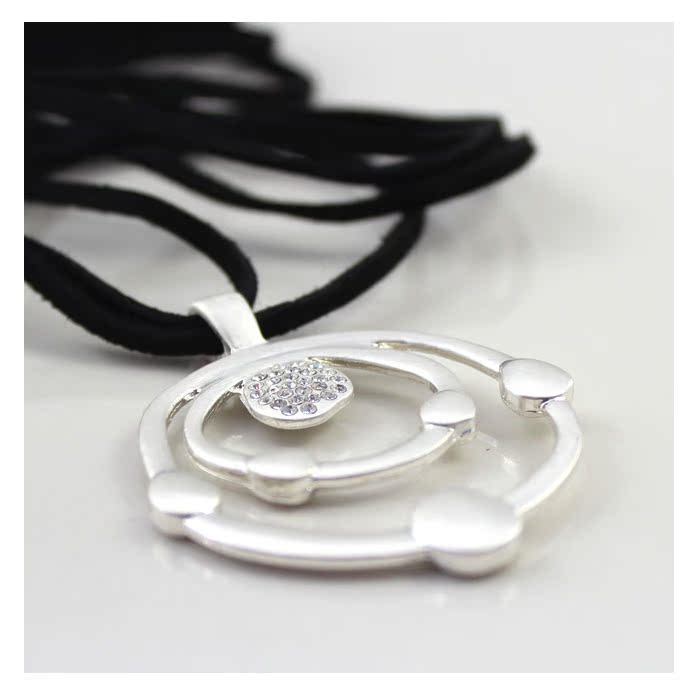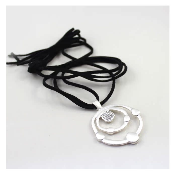 99克拉欧美时尚饰品质感环形坠皮绳子多层短款项链男女简约(NF)
