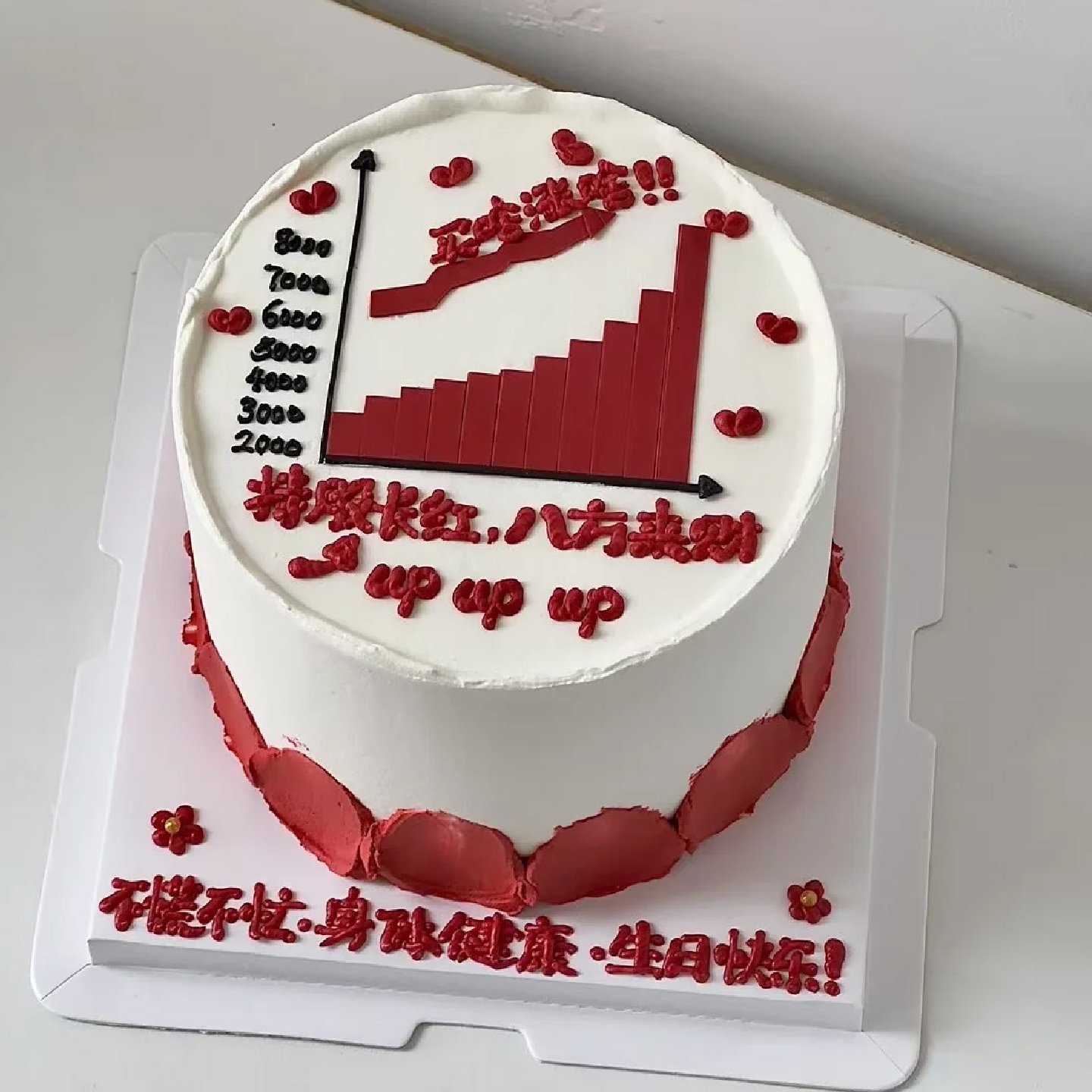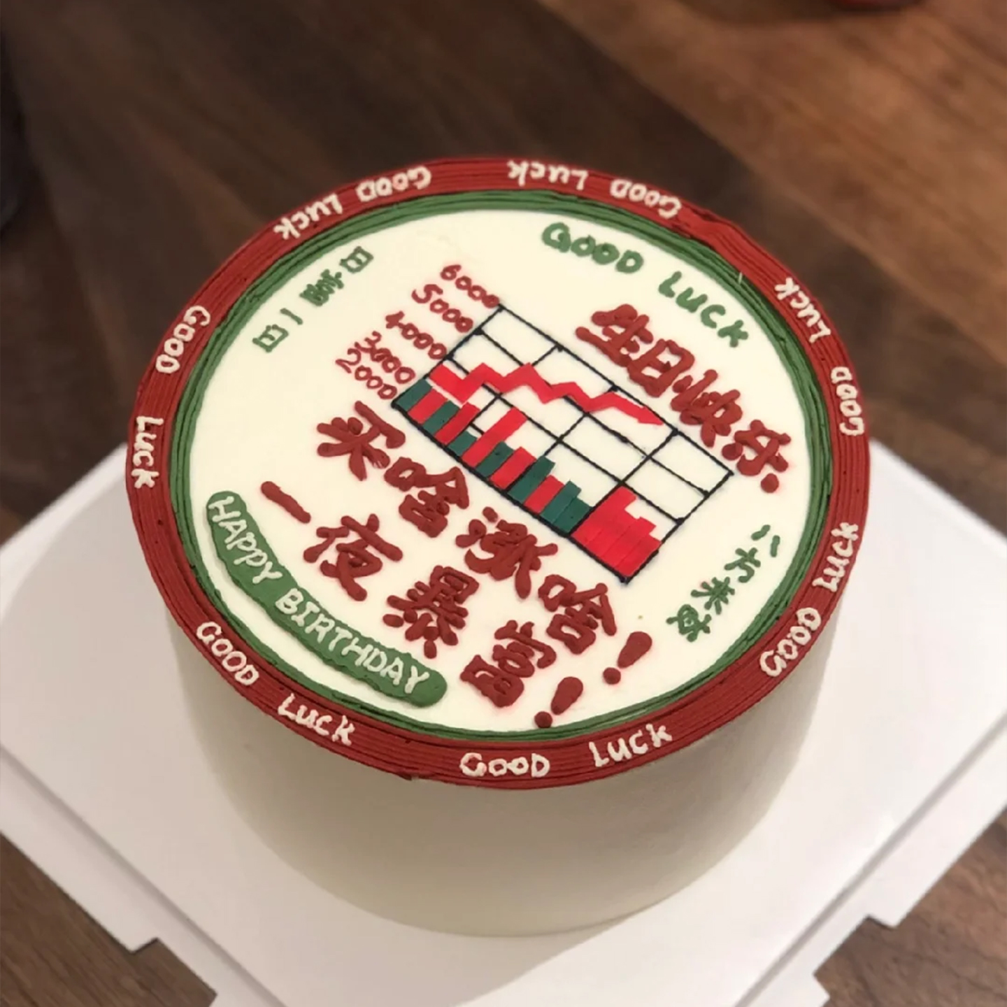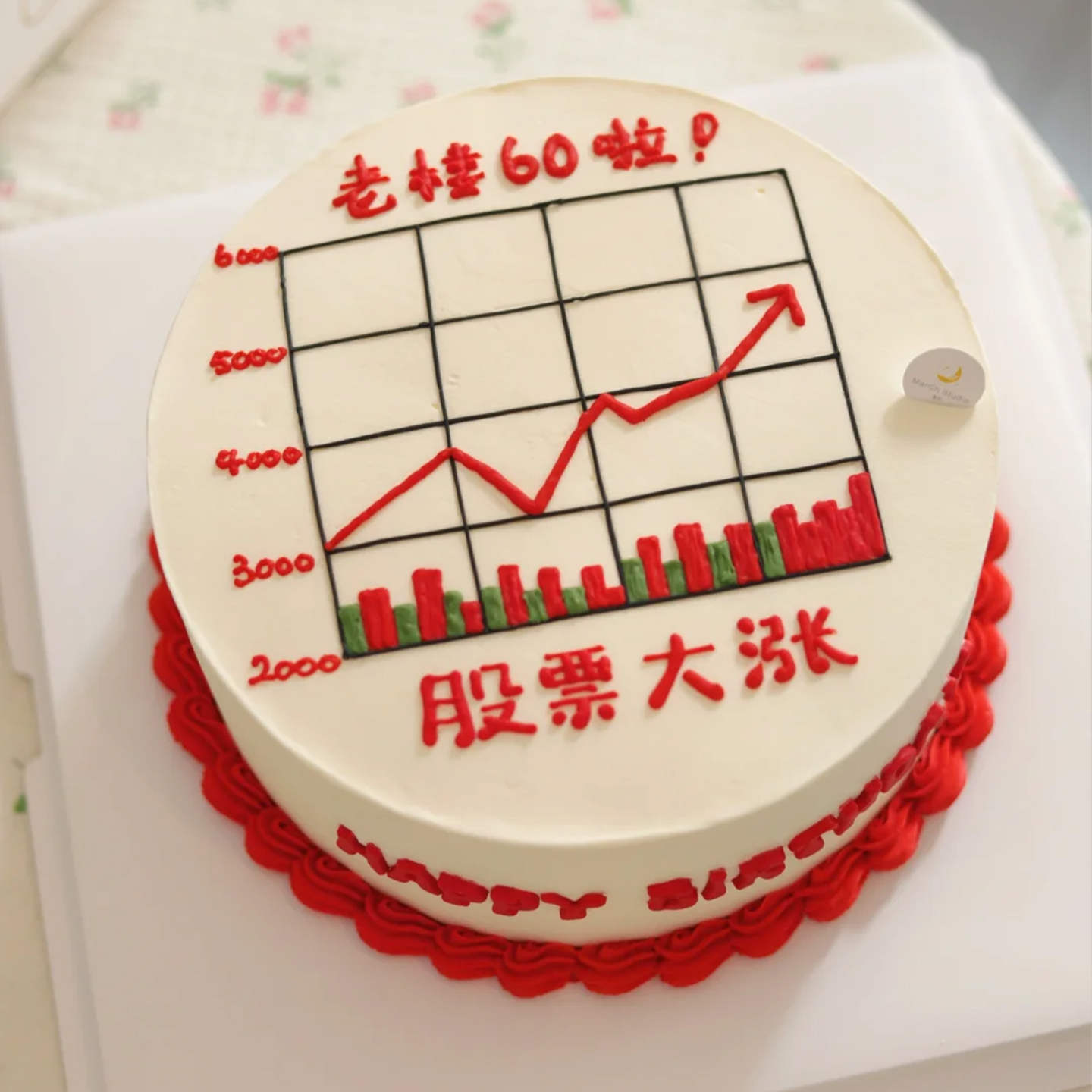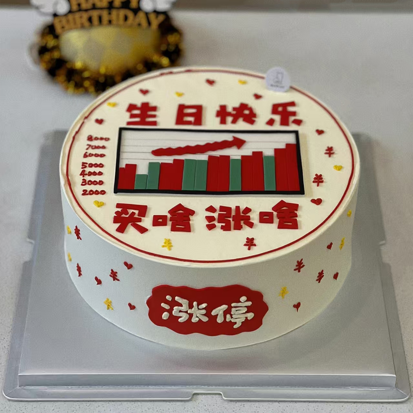 创意生日发财股票蛋糕装饰炒股大涨股市主题糯米纸打印可定制糖纸