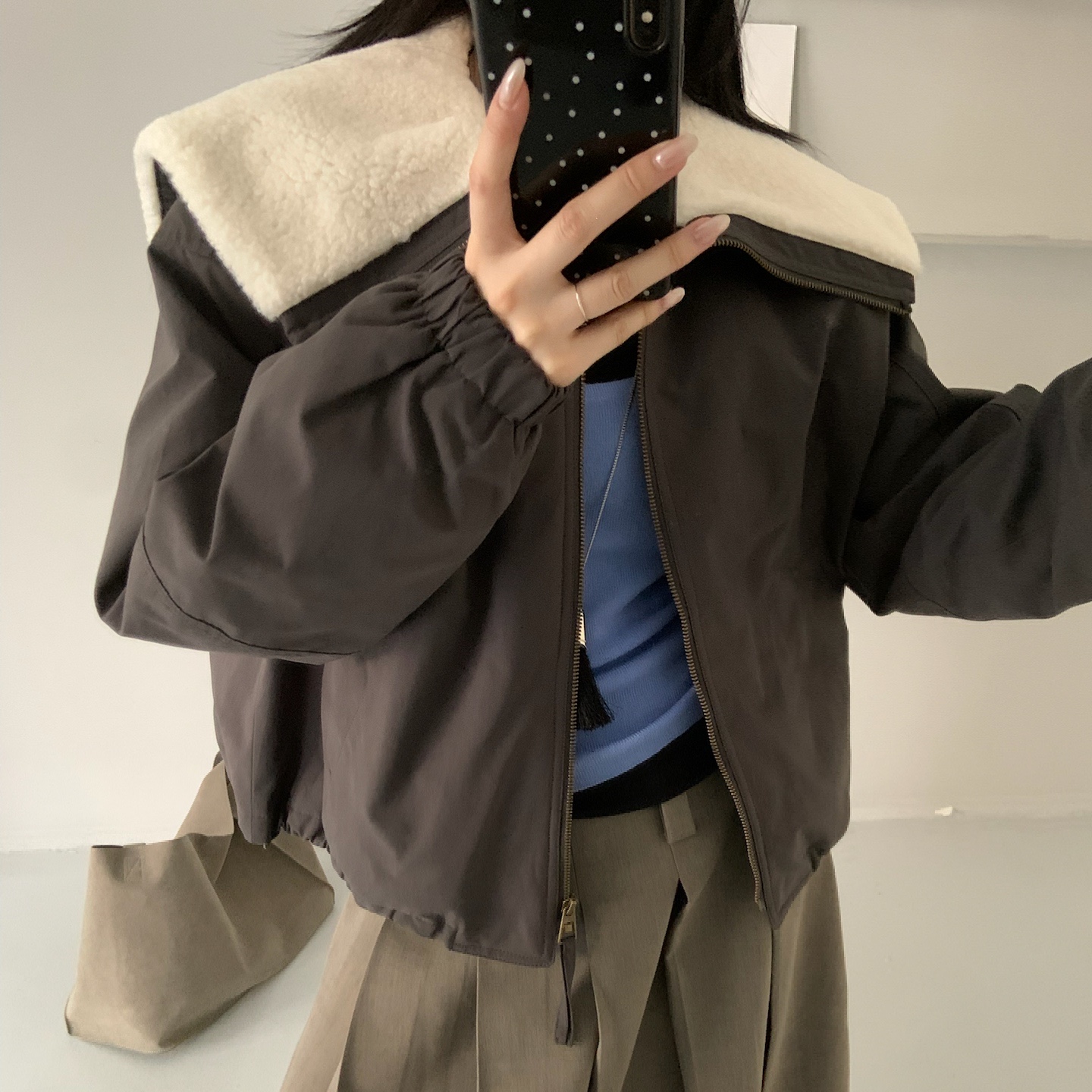 羊羔毛大翻领夹棉外套女2025秋冬新款高级感短款小个子棉衣棉服潮