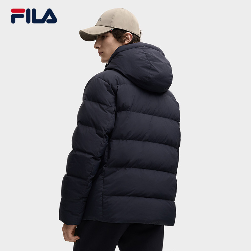 FILA斐乐男士保暖鸭绒羽绒服2025冬季新款中长款简约休闲保暖外套