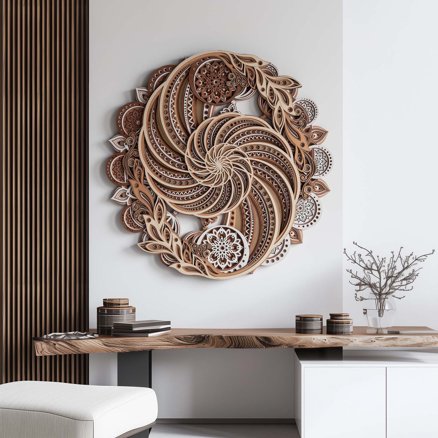 梯木叠雕时来运转玄关客厅圆形装饰画沙发背景墙挂画餐厅卧室壁画