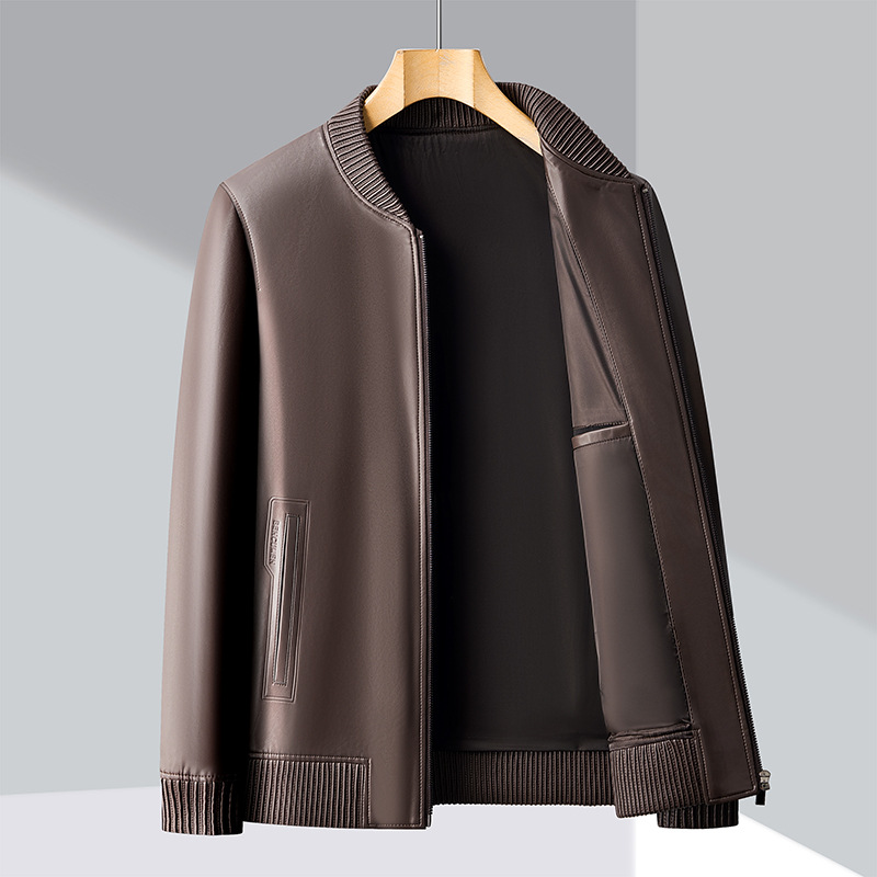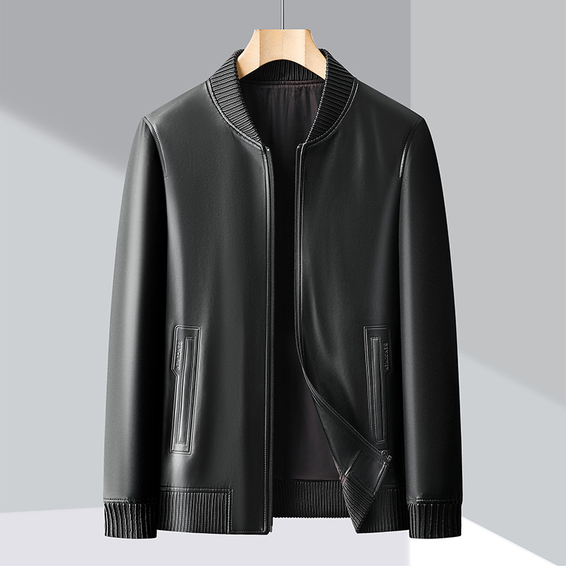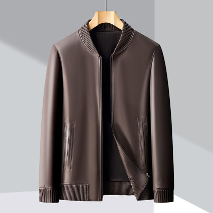 日本品质春秋季新款皮衣男海宁绵羊皮男装休闲夹克中年爸爸装棒球
