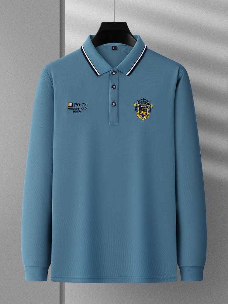 秋季男士长袖T恤纯棉翻领高端POLO衫外贸原单男装刺绣保罗上衣潮