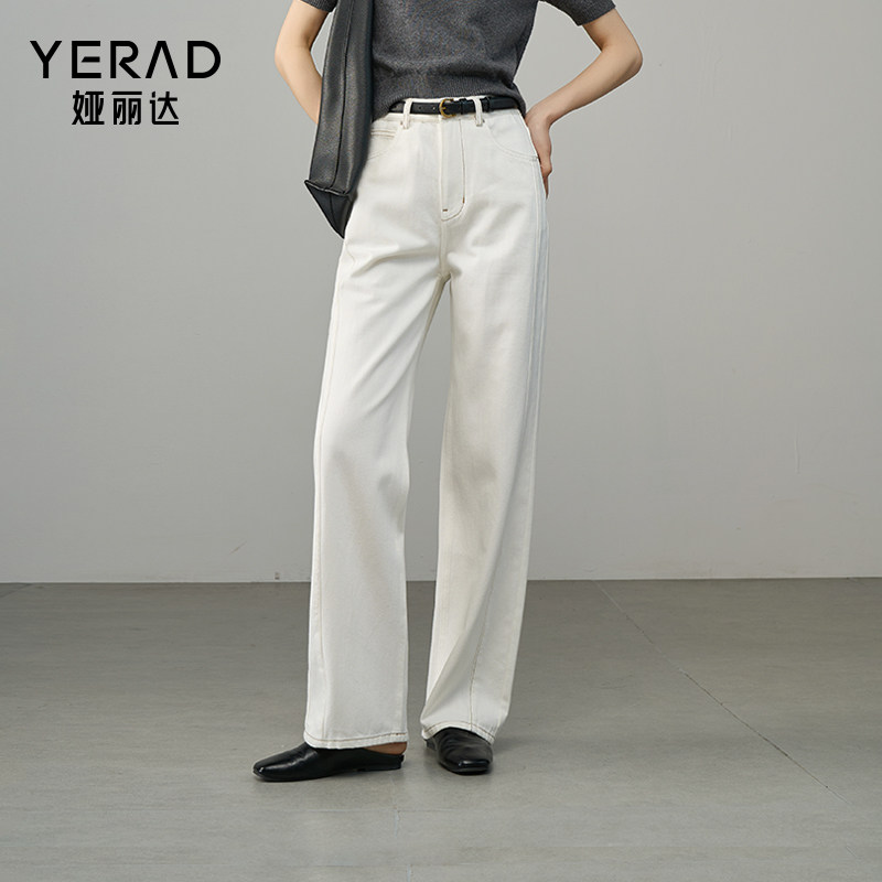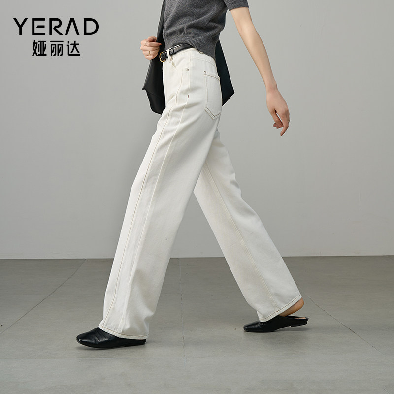 娅丽达宽松香蕉裤女2025春秋新款牛仔梨形镰刀哈伦裤珍珠白云感裤