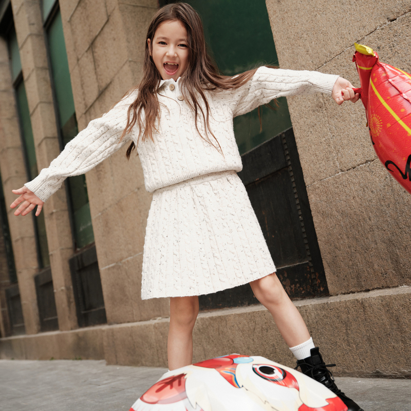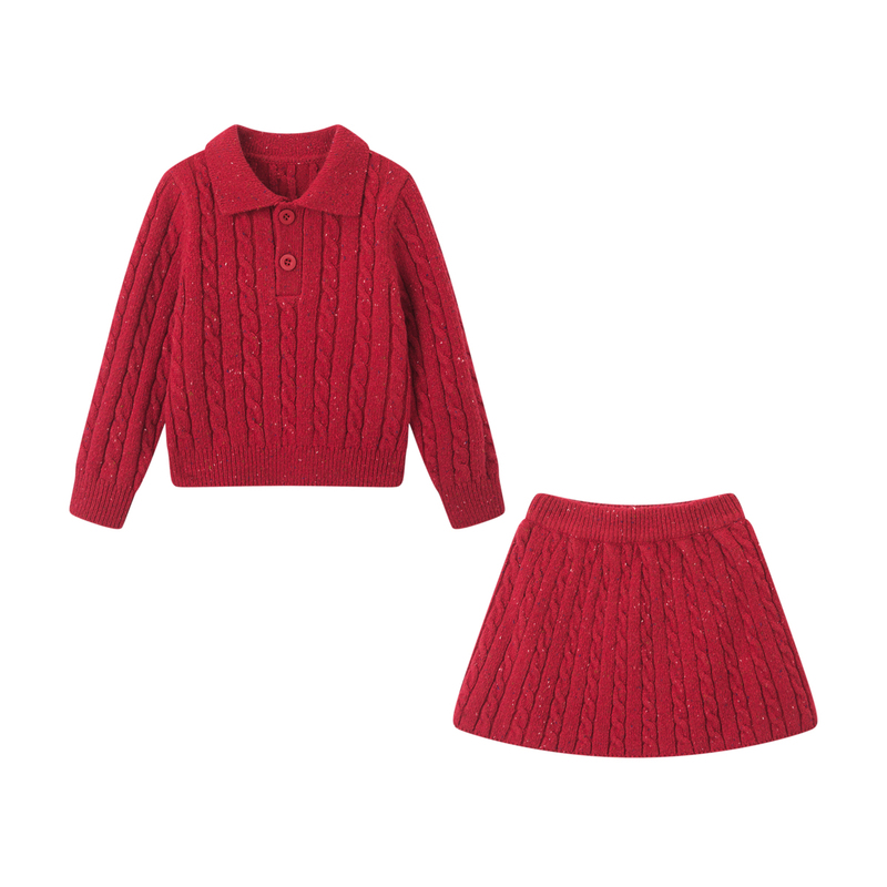 GXG童装春季儿童套装女国风毛衫短裙套装