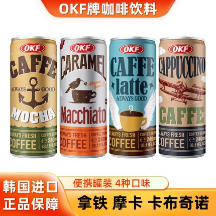 韩国进口okf拿铁摩卡咖啡液卡布奇诺240ml罐装整箱即饮咖啡饮料