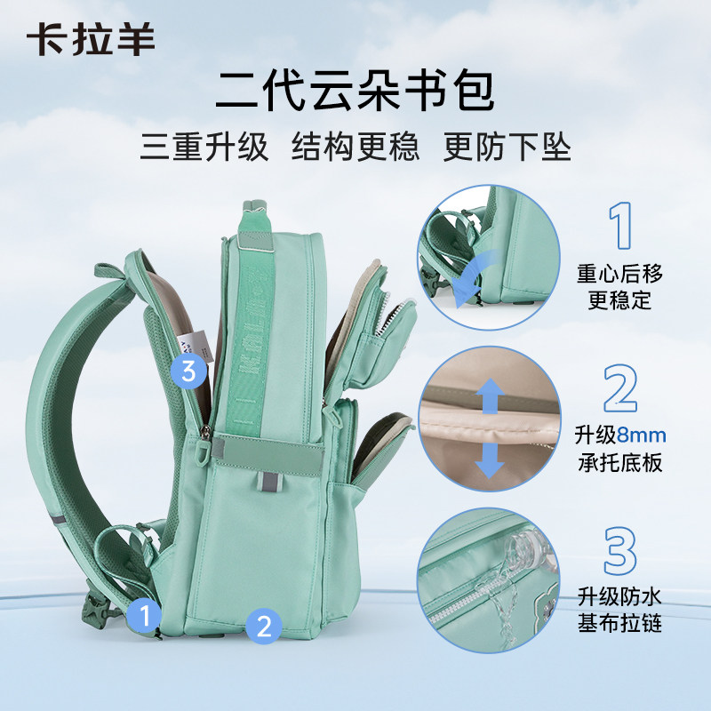 卡拉羊新款初高中学生云朵书包大容量减负防下坠男轻便双肩背包女