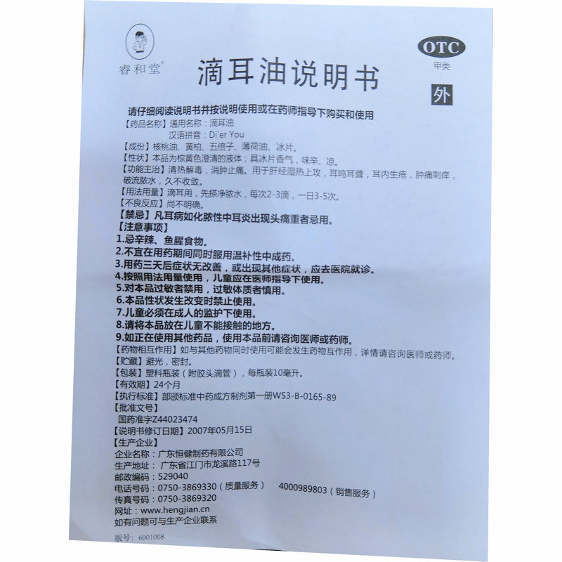 睿和堂滴耳油恒健滴耳剂滴耳液中耳炎专用耳朵
