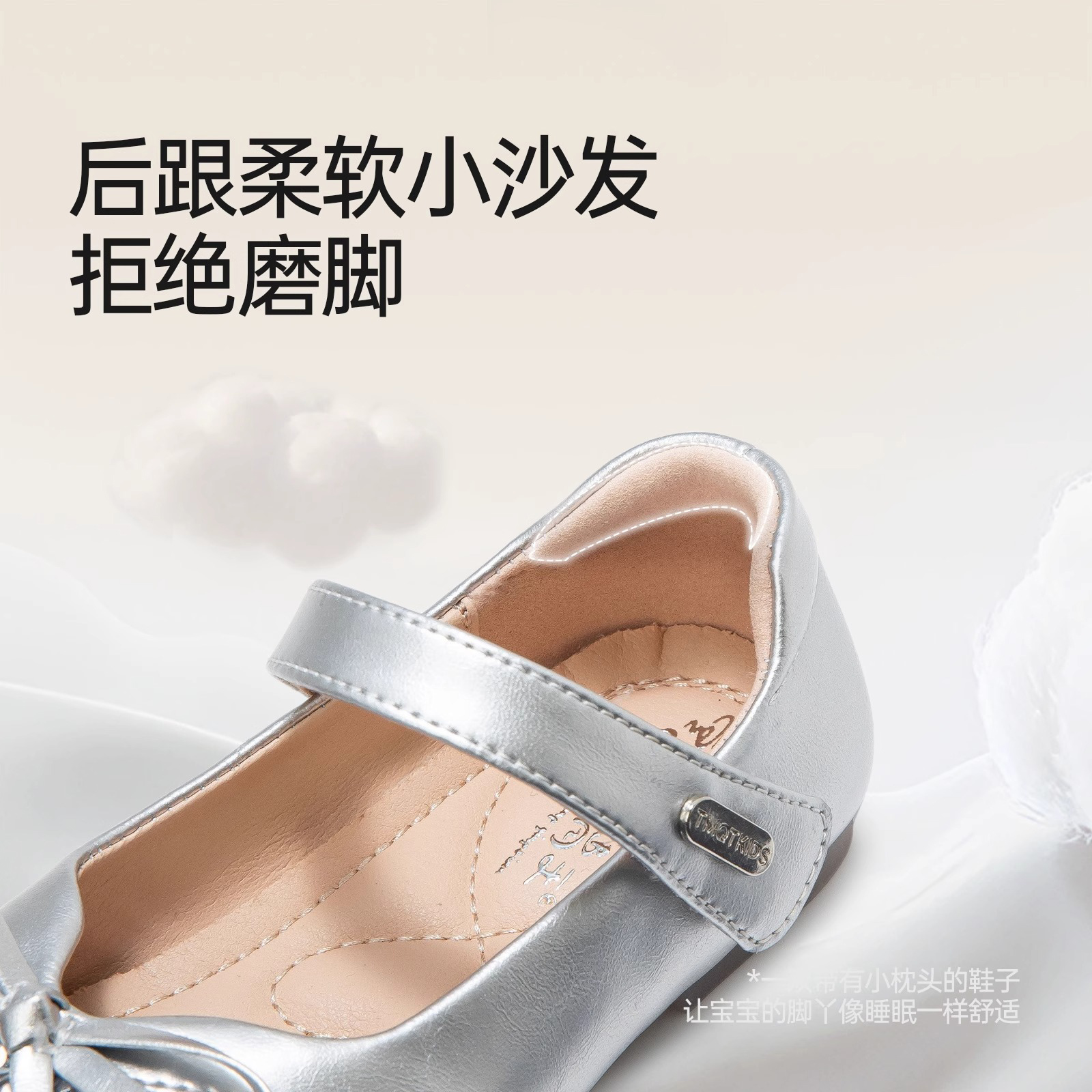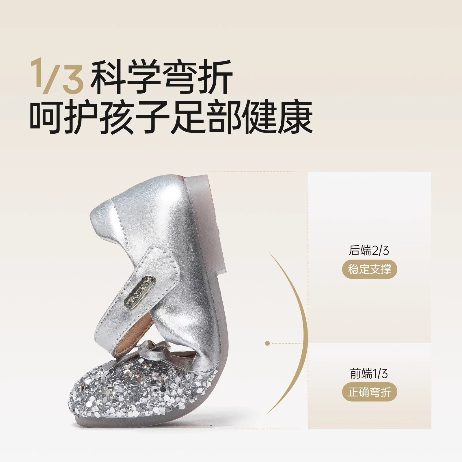 真皮公主鞋女童艾莎鞋子2025新款儿童皮鞋宝宝银色水晶鞋单鞋软底