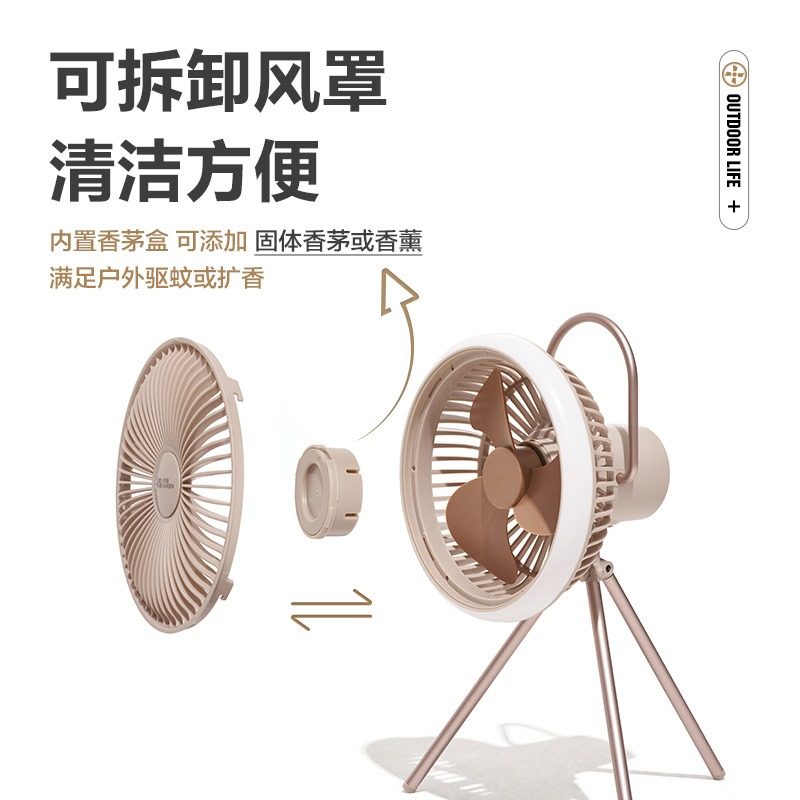牧高笛户外电扇灯挂立两用帐篷灯露营吊扇可充电折叠式USB电风扇