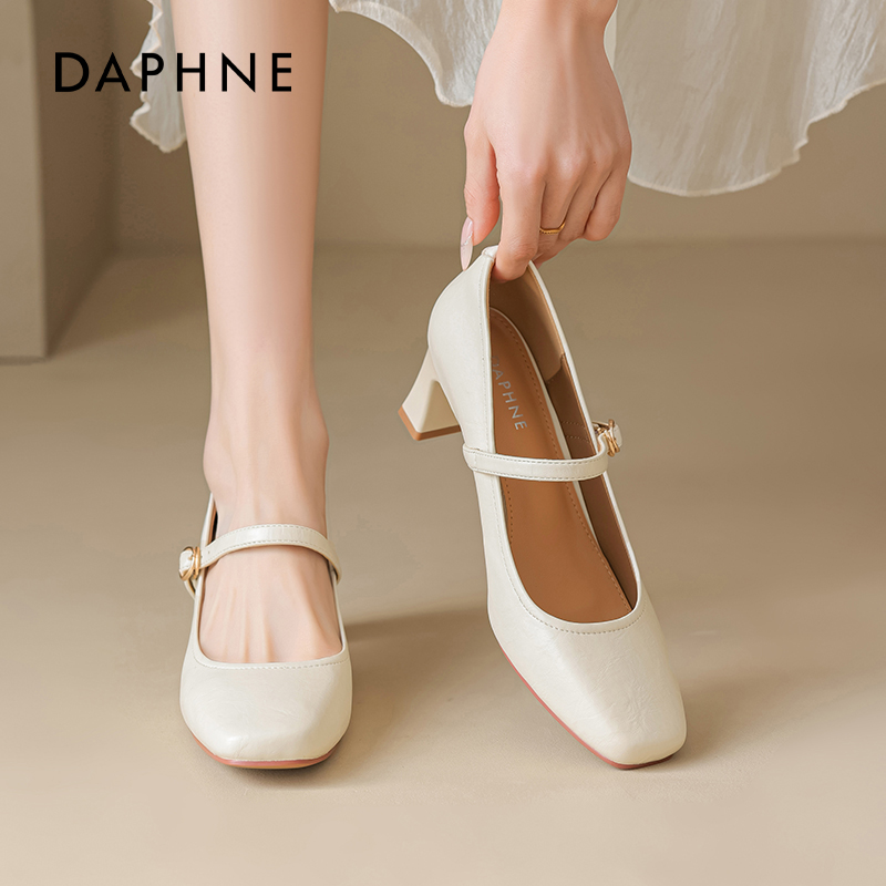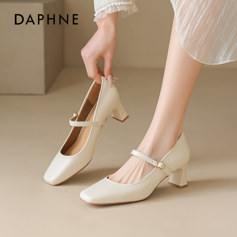 达芙妮高跟凉鞋女款粗跟2025新款复古方头小皮鞋配裙子玛丽珍单鞋