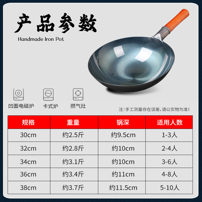 老式家用铁锅炒菜锅熟铁无涂层圆底已开锅燃气灶厨师繁良炒锅马勺