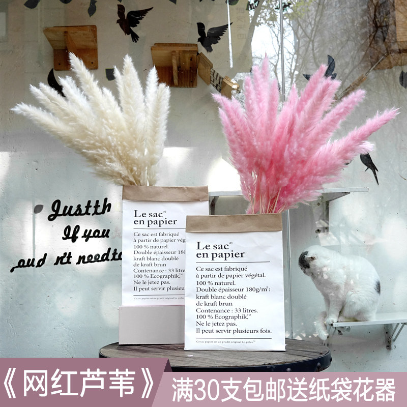 粉色网红花束小芦苇草ins干花装饰ins牛皮纸袋干花花束大穗