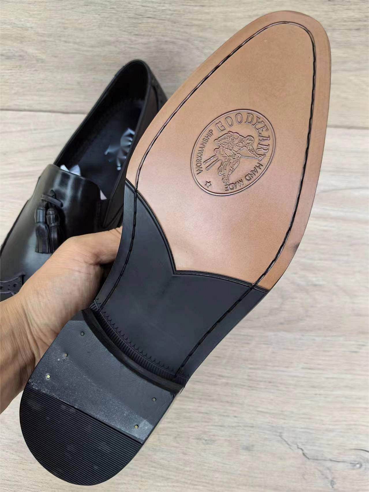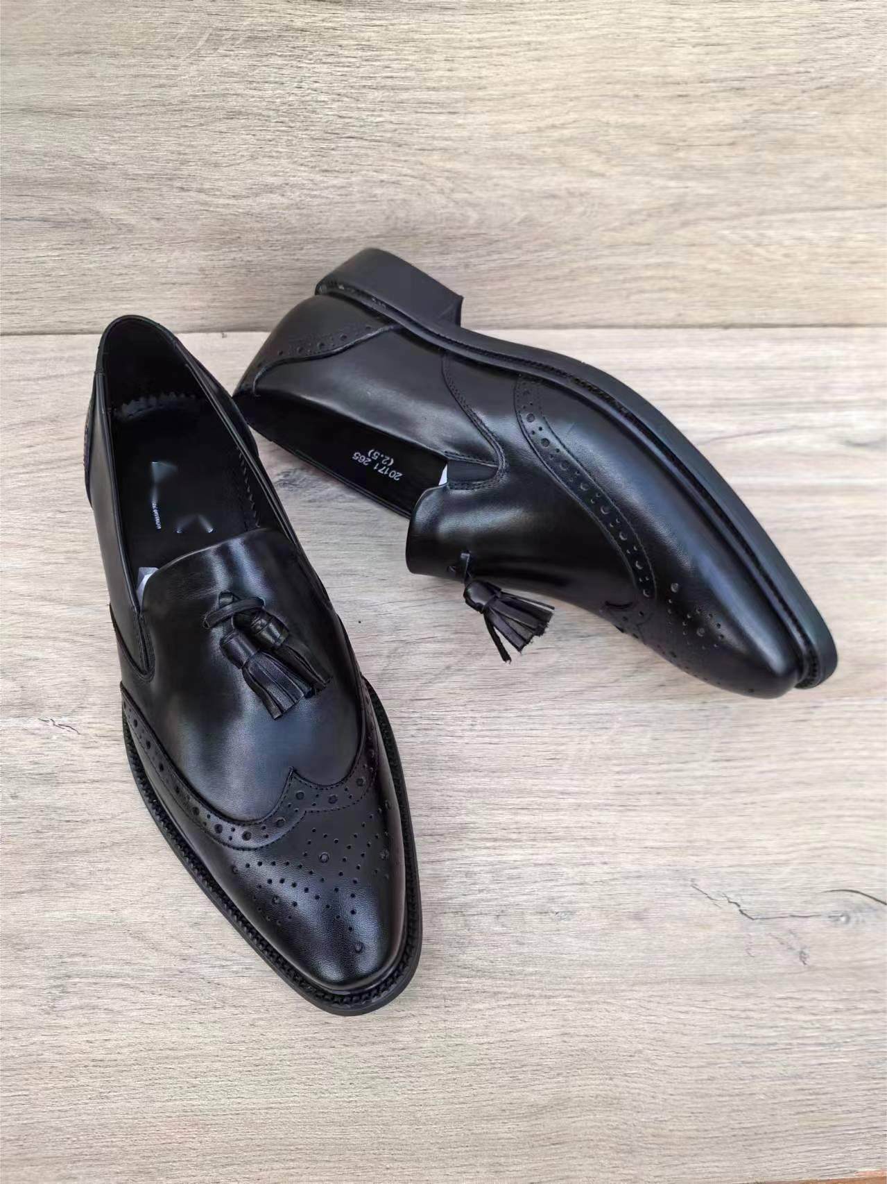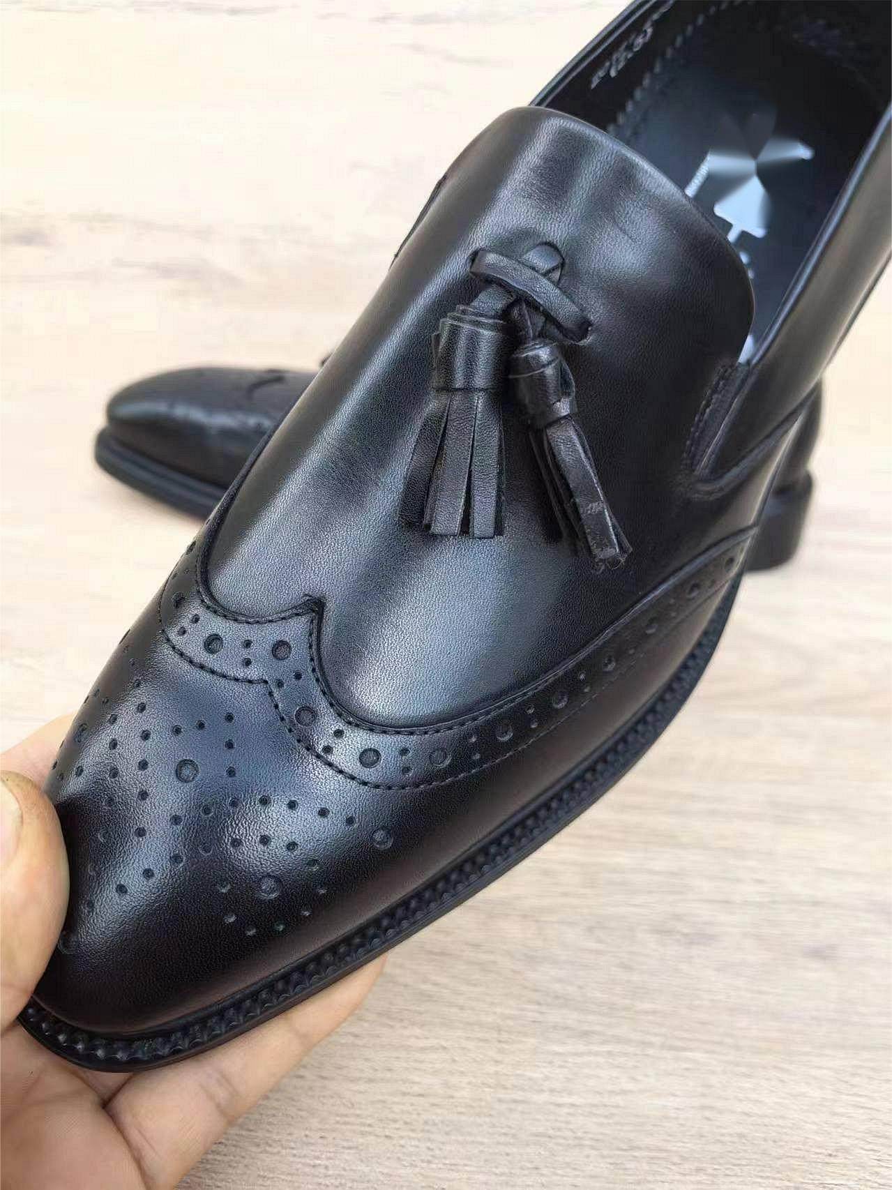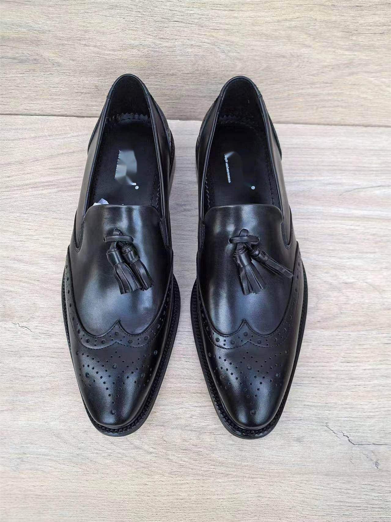 意大利手工男鞋尖头布洛克皮鞋真皮英伦百搭一脚蹬休闲乐福鞋流苏