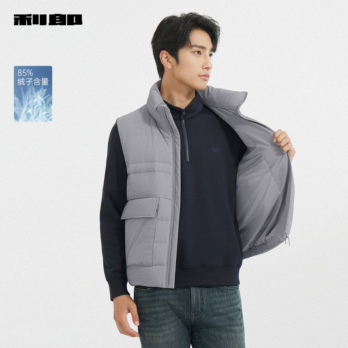 利郎奥莱 肌理白鸭绒羽绒马甲男士2025冬季保暖休闲男装立领外套
