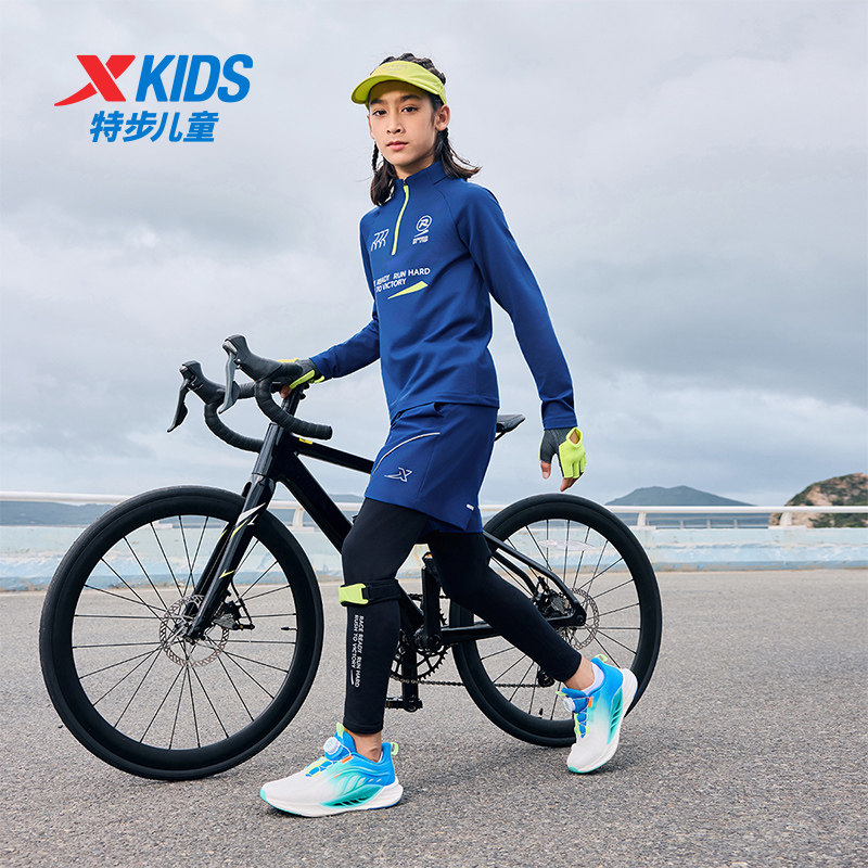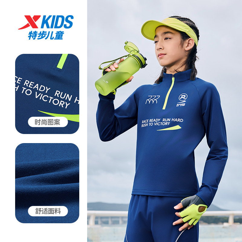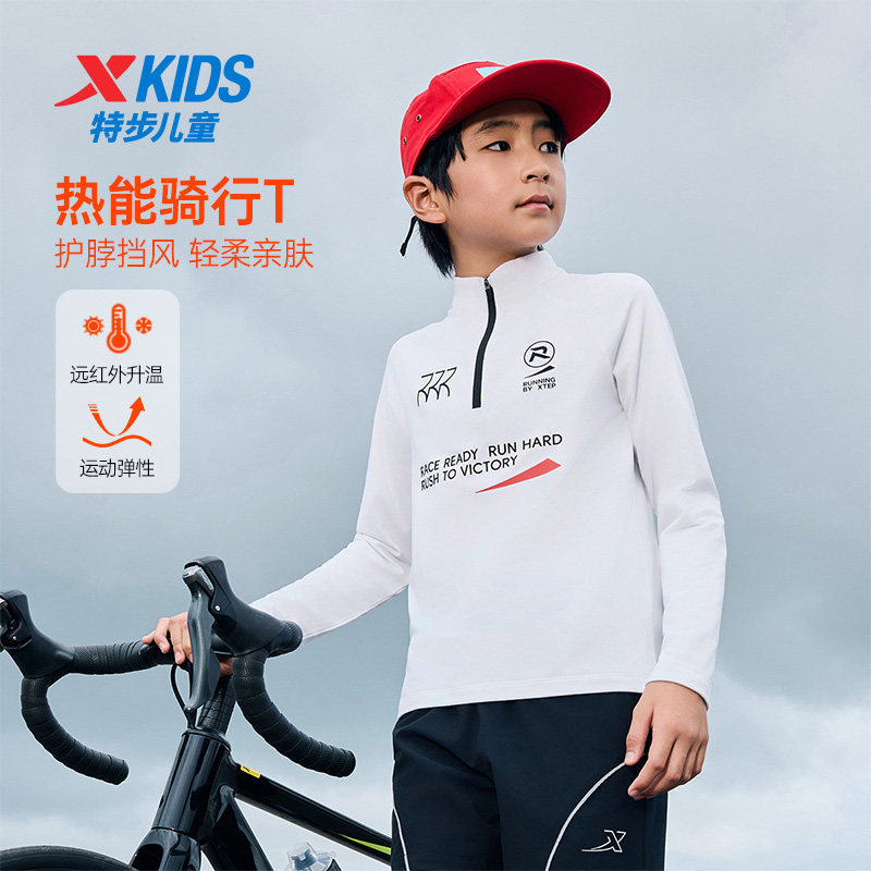 特步童装2026春季男童长袖T恤儿童休闲立领上衣中大童打底衫春装