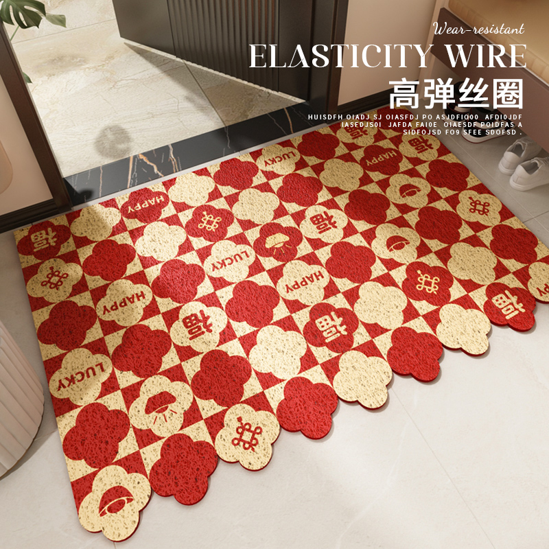 红色丝圈入户门地垫进门门口地毯新年脚垫换鞋家用防滑新家进门垫