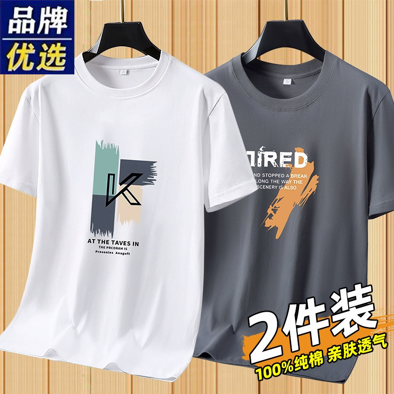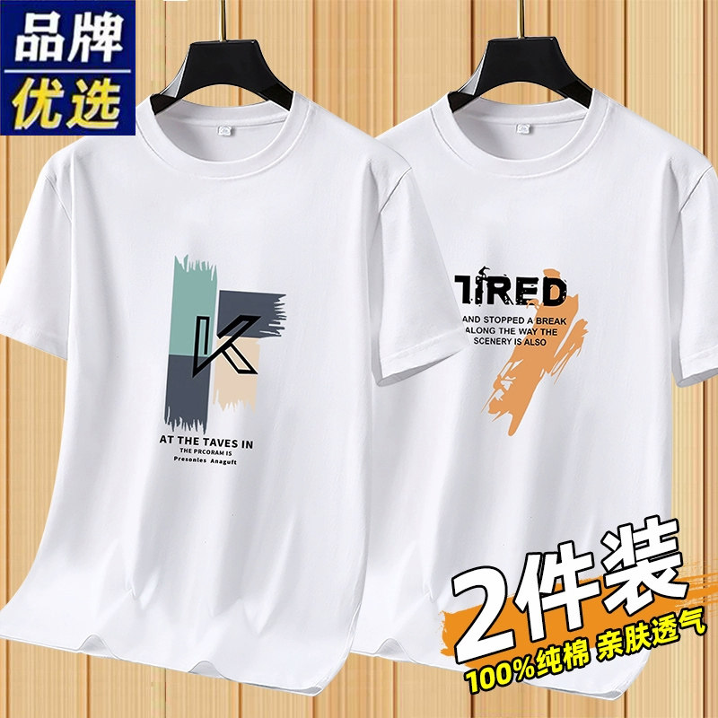 品牌纯棉男t恤短袖夏季2025新款透气中老年运动圆领上衣白色流行