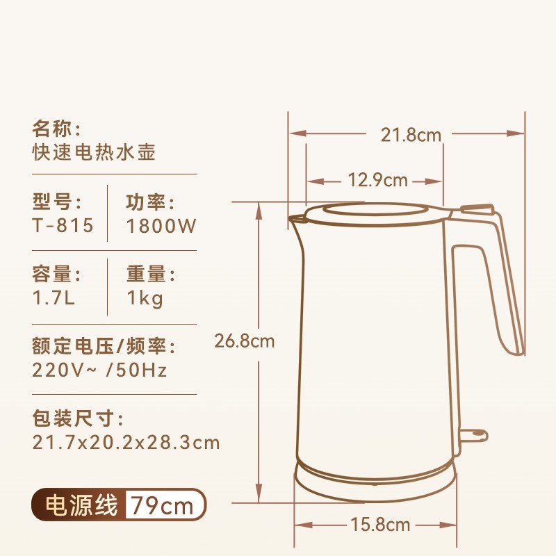 金灶T-815烧水壶自动断电大容量煮泡茶专用双层防烫电热水壶家用