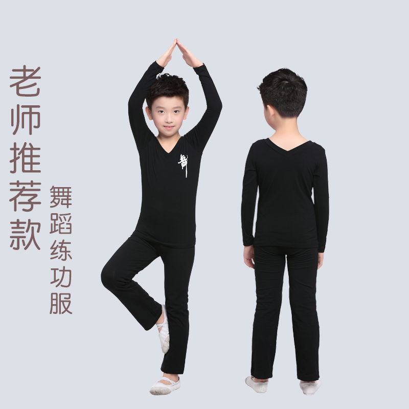 儿童舞蹈服男童春秋长袖上衣男生跳舞练功服舞字套装男孩中国舞服