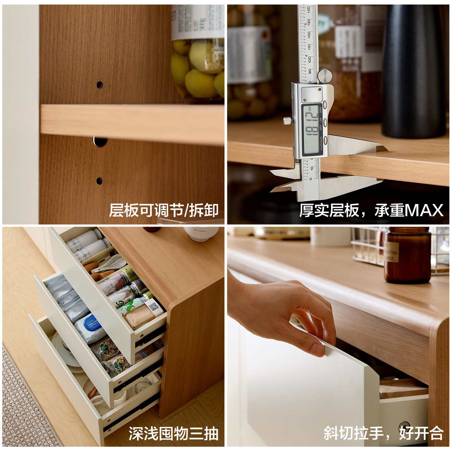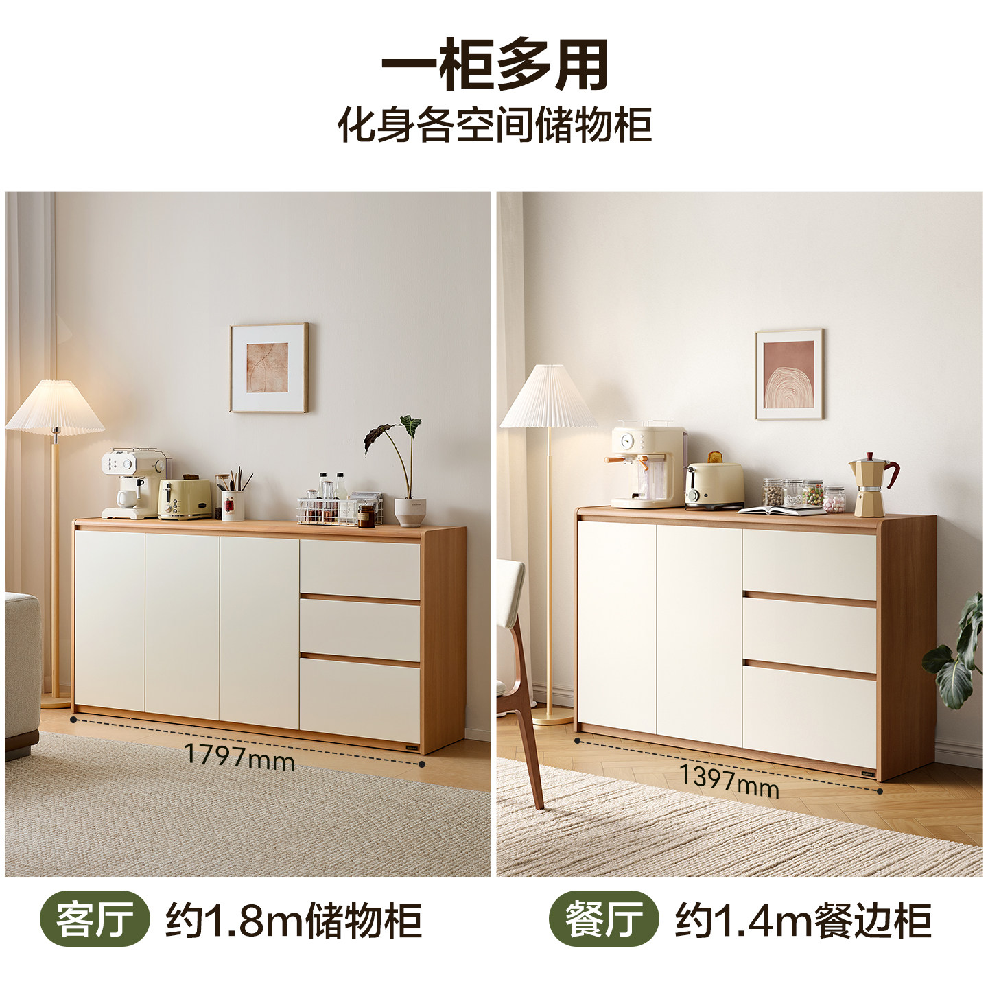 全友家居原木奶油风餐边柜客厅家用靠墙储物抽屉柜卧室床尾置物柜