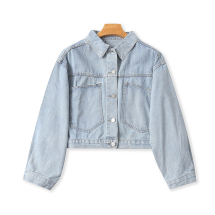 牛仔外套 秋季新款外贸女装时尚宽松翻领单排扣长袖休闲外套32583
