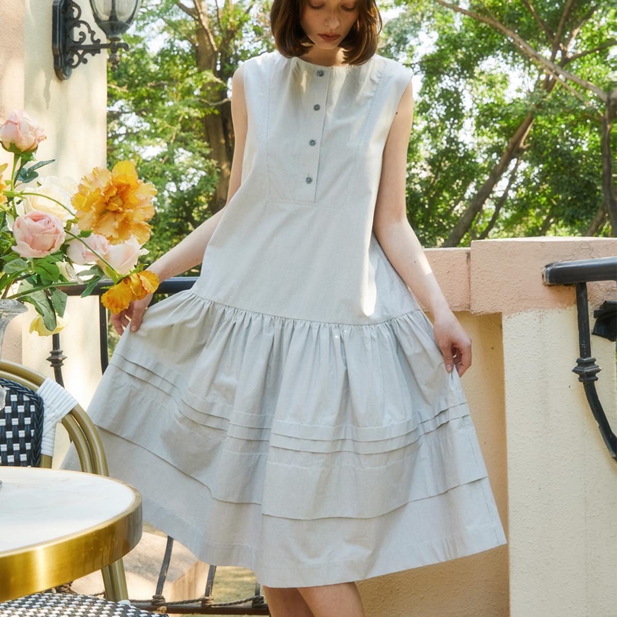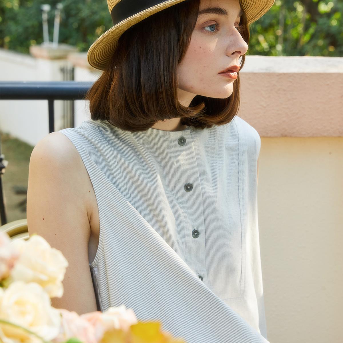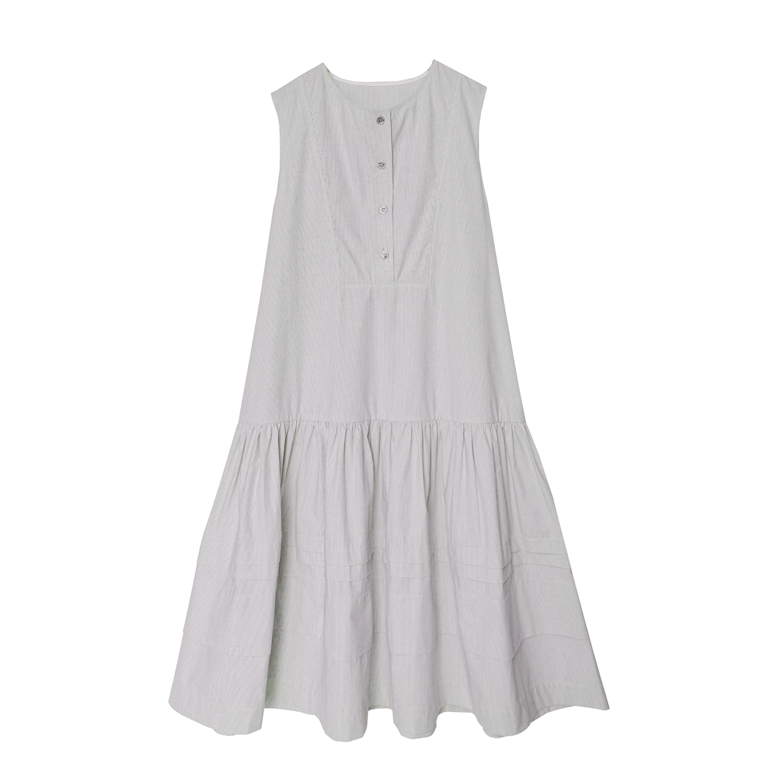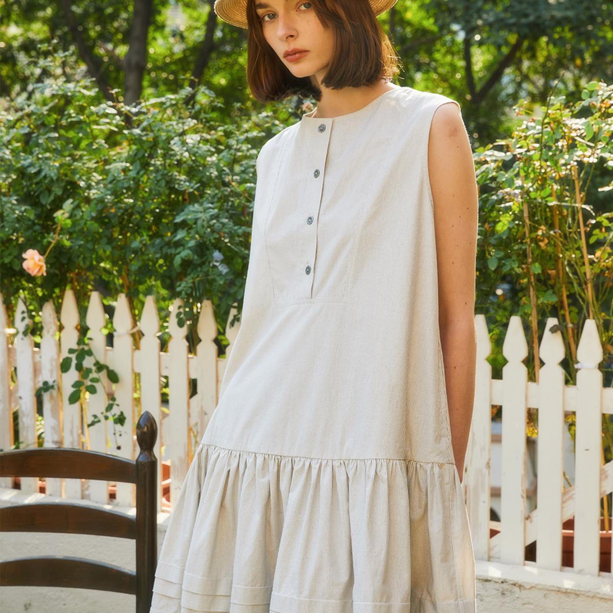 Nuagesfroufrou法式棉麻条纹背心连衣裙原创设计宽松文艺背心长裙