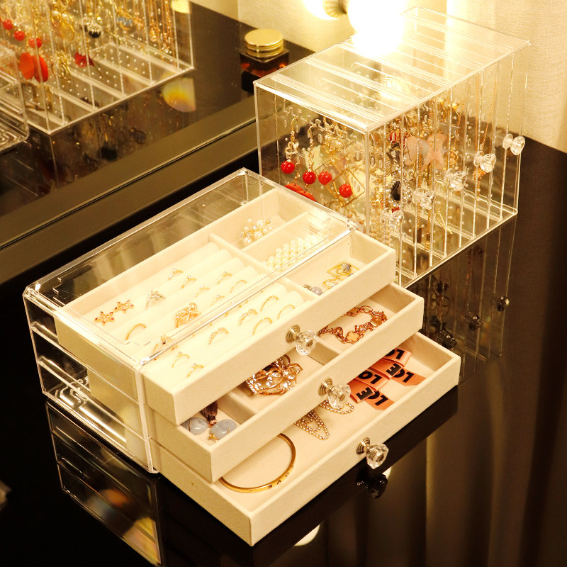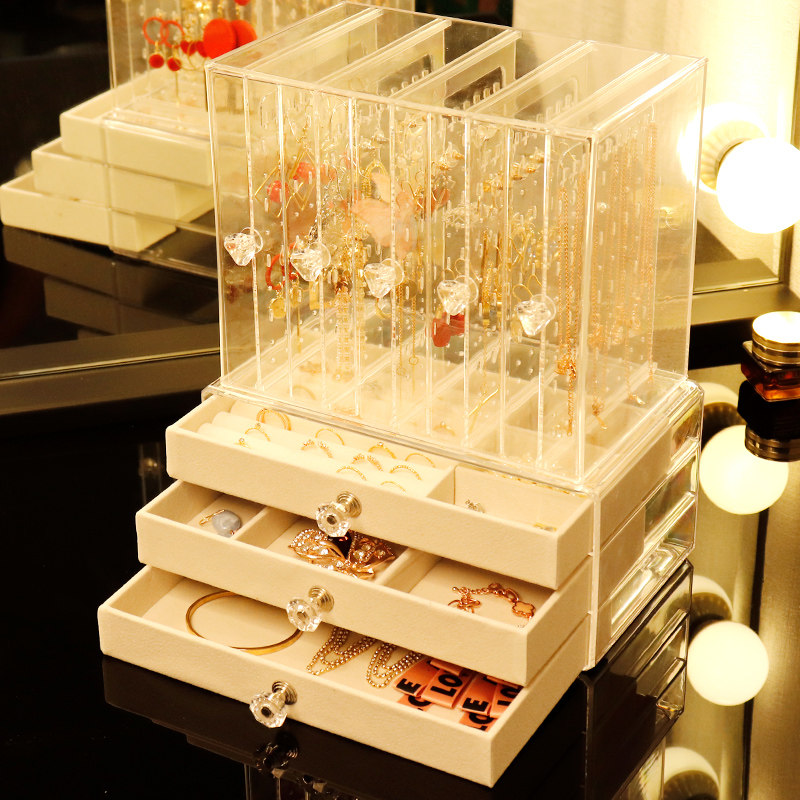大容量耳环收纳盒耳钉项链手链展示架梳妆台桌面手饰品首饰整理箱