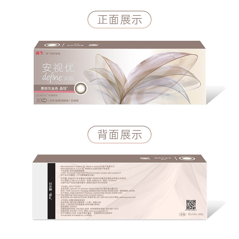 强生美瞳日抛30片安视优define大小直径进口彩色近视隐形眼镜正品