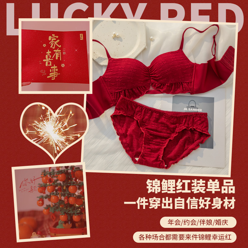 调整型法式本命年红色结婚新2023爆款龙年冬季小胸聚拢文胸罩套装