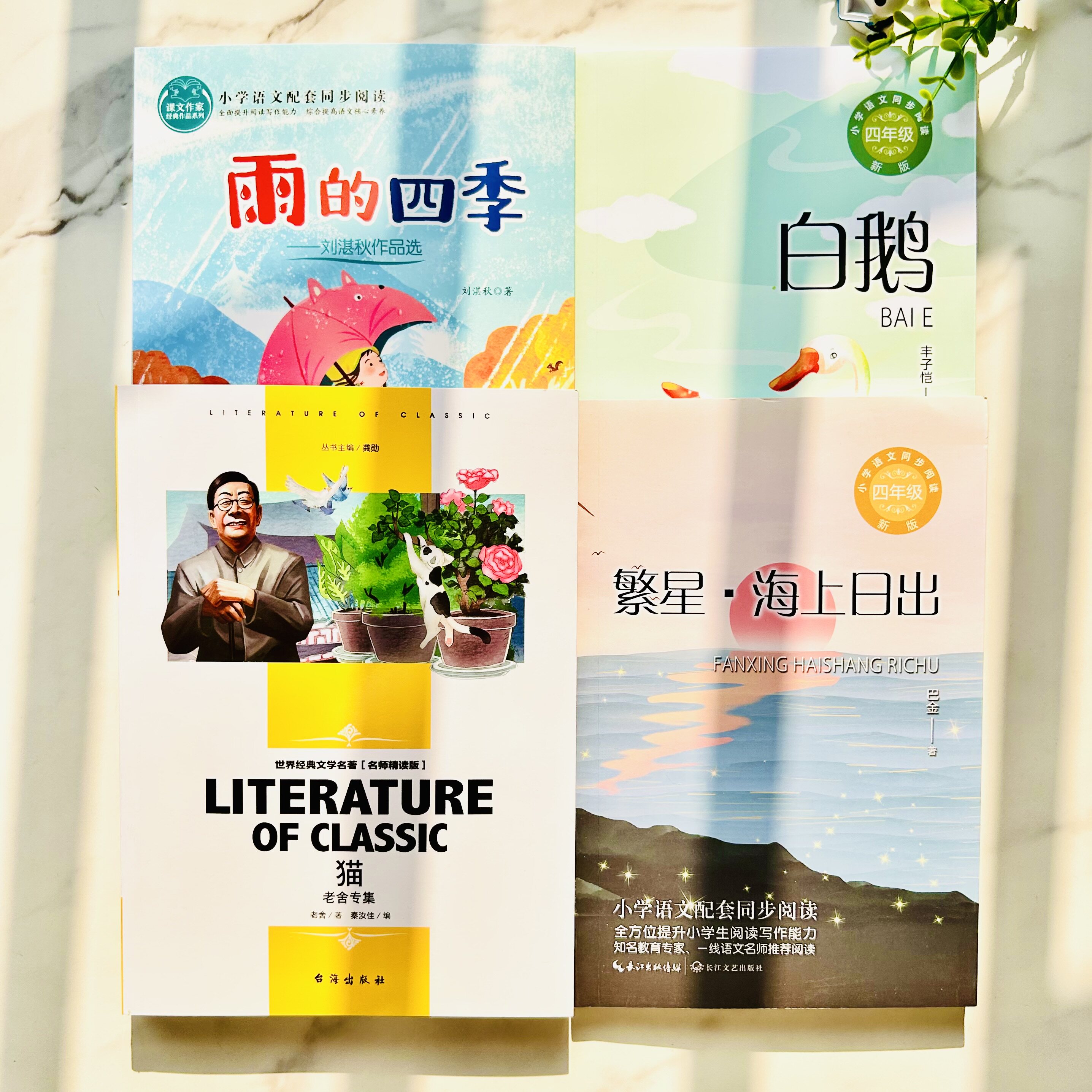 雨的四季刘湛秋著乌拉波拉故事集柏吉尔白鹅丰子恺著猫老舍海上日出巴金青铜葵花王尔德童话人教版课内作家四年级下册必读的课外书