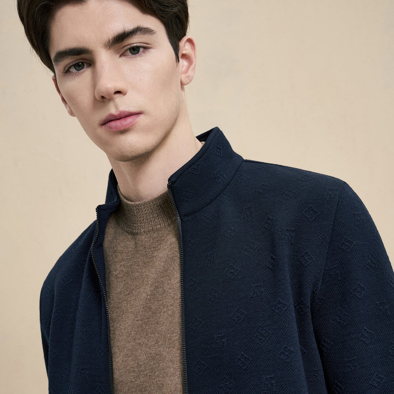 【超轻羊毛】emz鄂尔多斯秋冬轻商务休闲立领针织开衫夹克外套男