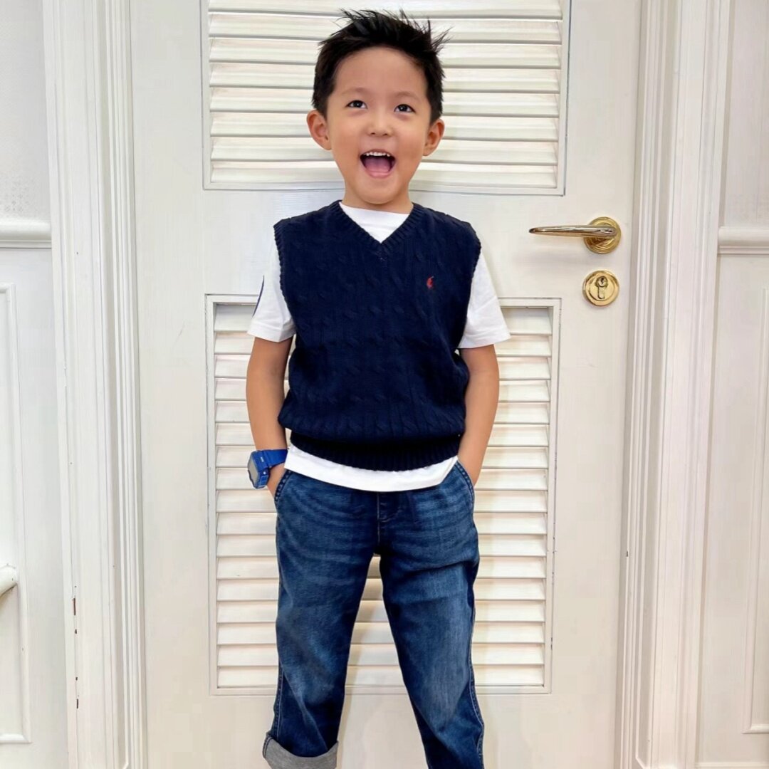 美系亲子童装 春秋男女童经典麻花背心中大童纯棉学院风针织马甲