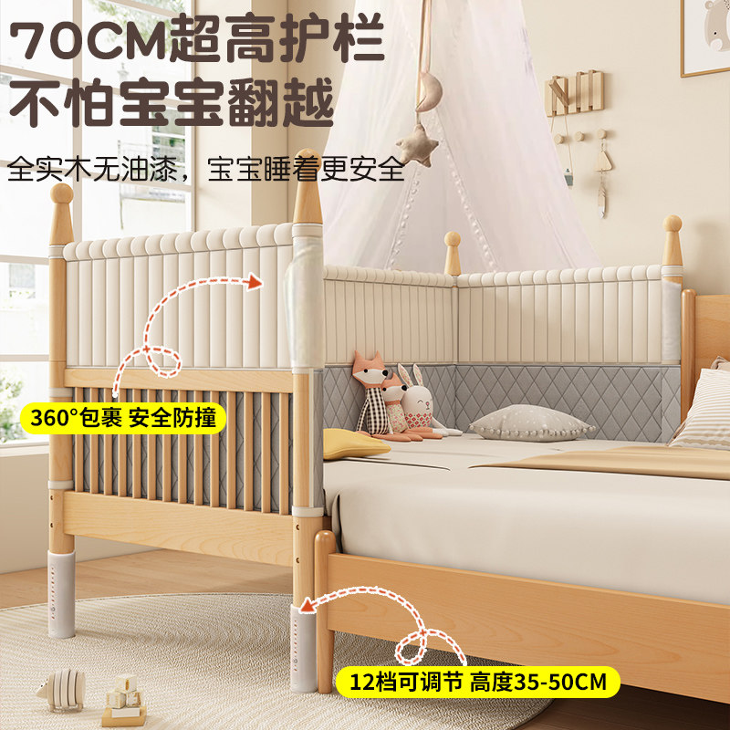 榉木儿童床拼接床婴儿床加宽宝宝床边床拼接大床实木床带护栏小床