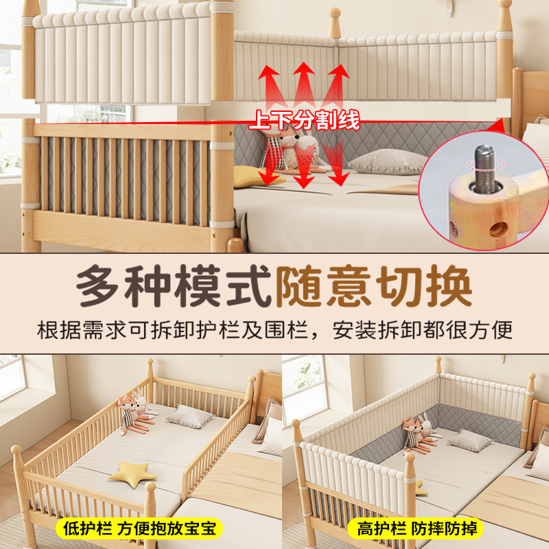 榉木儿童拼接床婴儿床加宽床边床